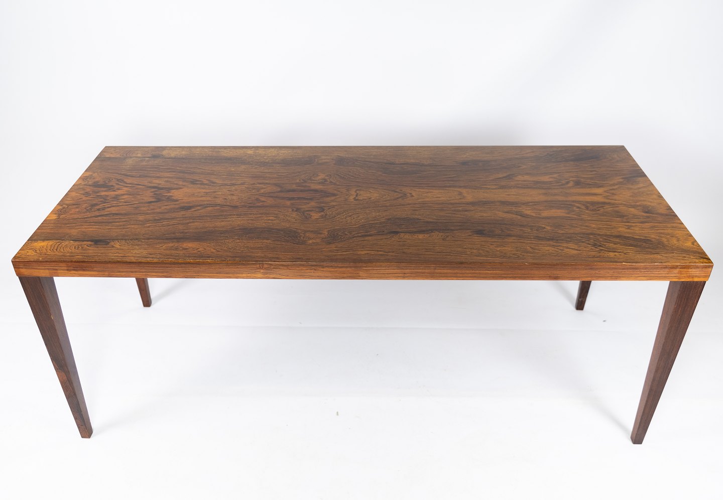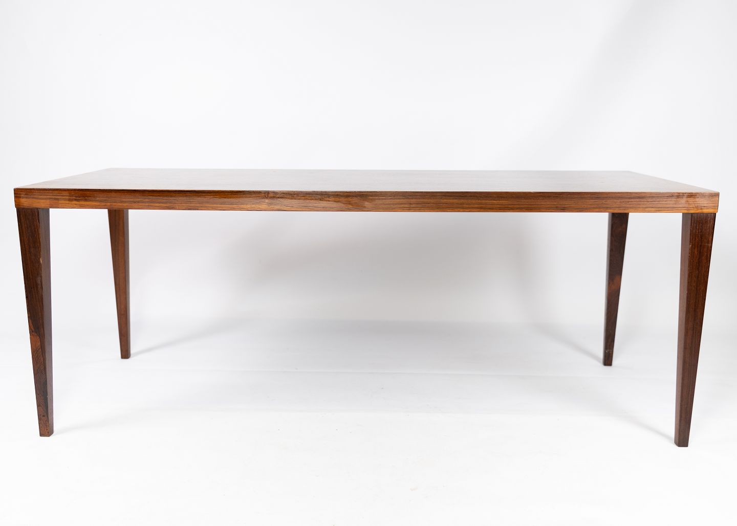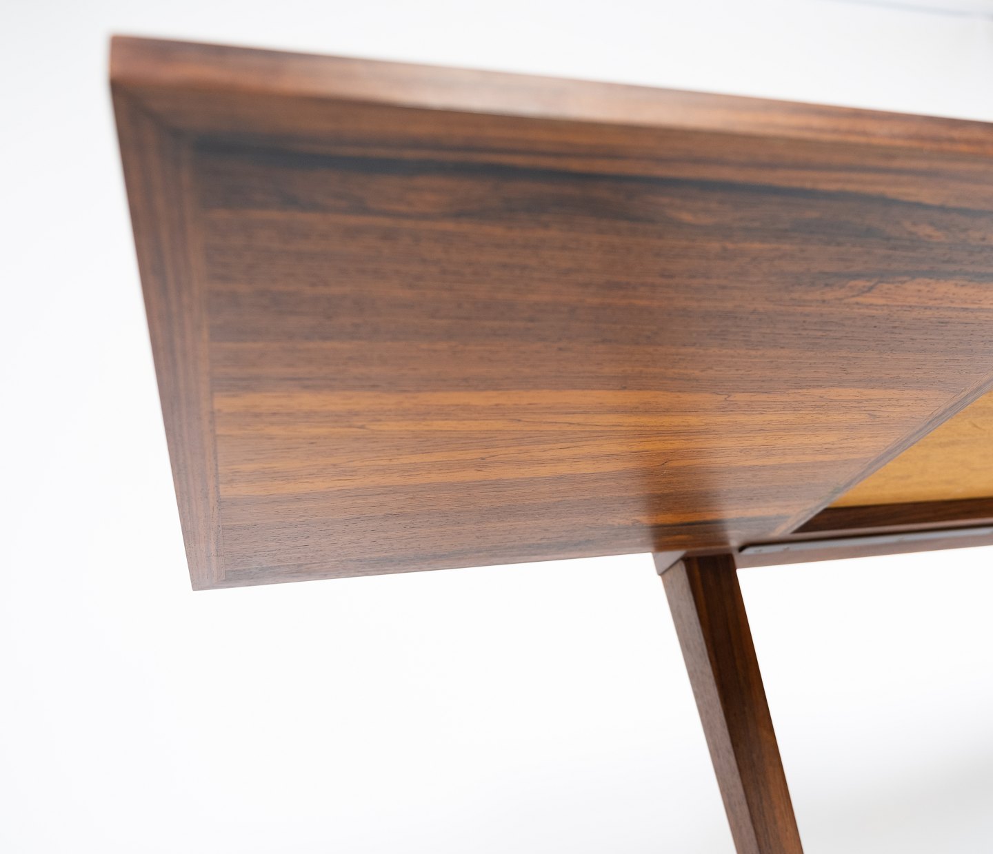 SoldOblong coffee table with extension leaf in rosewood of Danish Design manufactured at Silkeborg furniture factory in the 1960s.