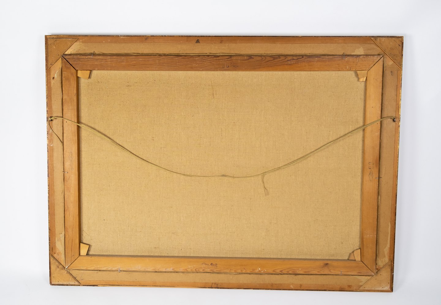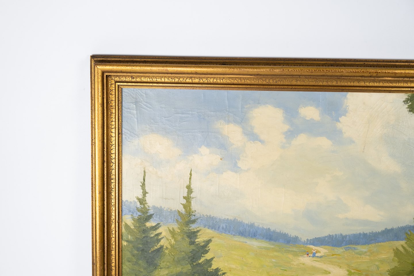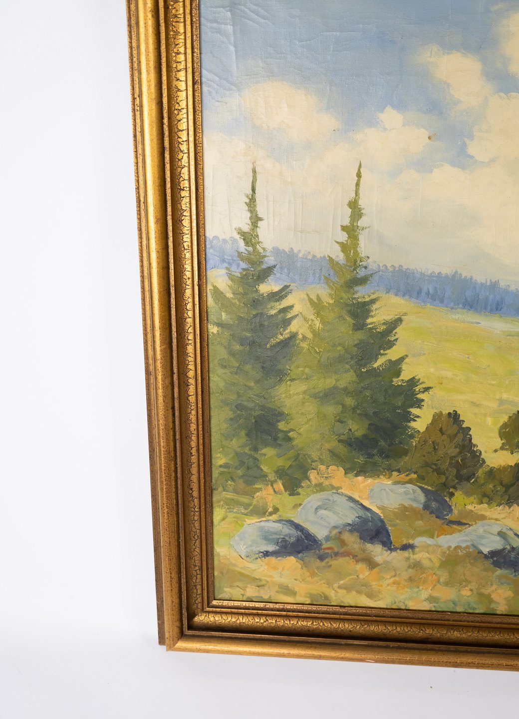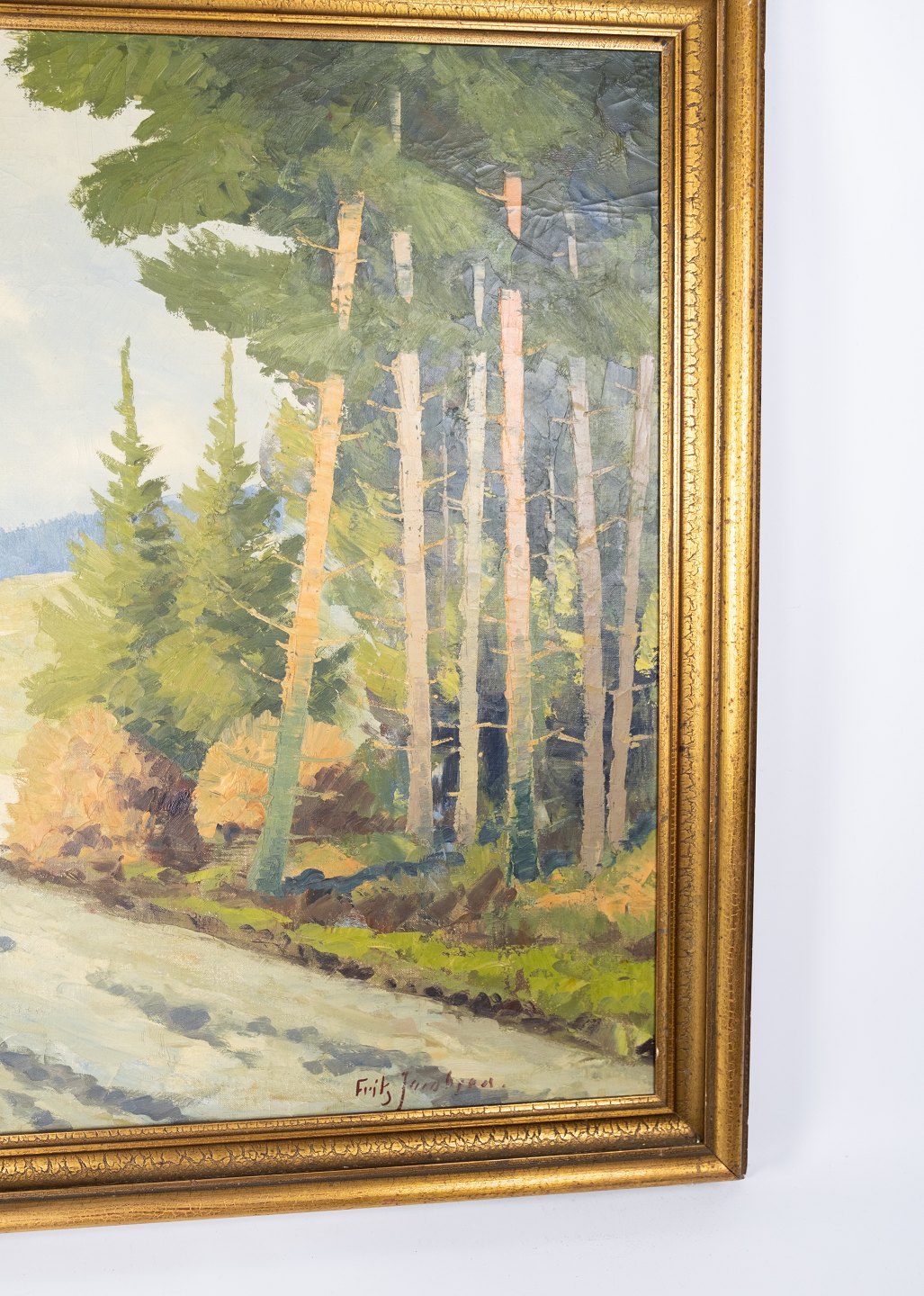 Oil painting with forrest motif and gilded frame, signed Frits Jacobsen.