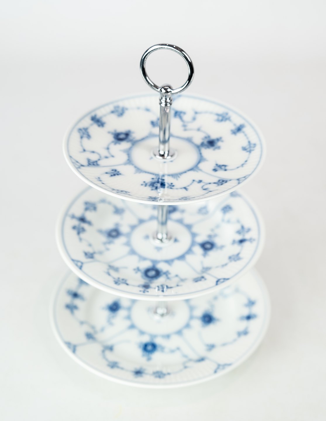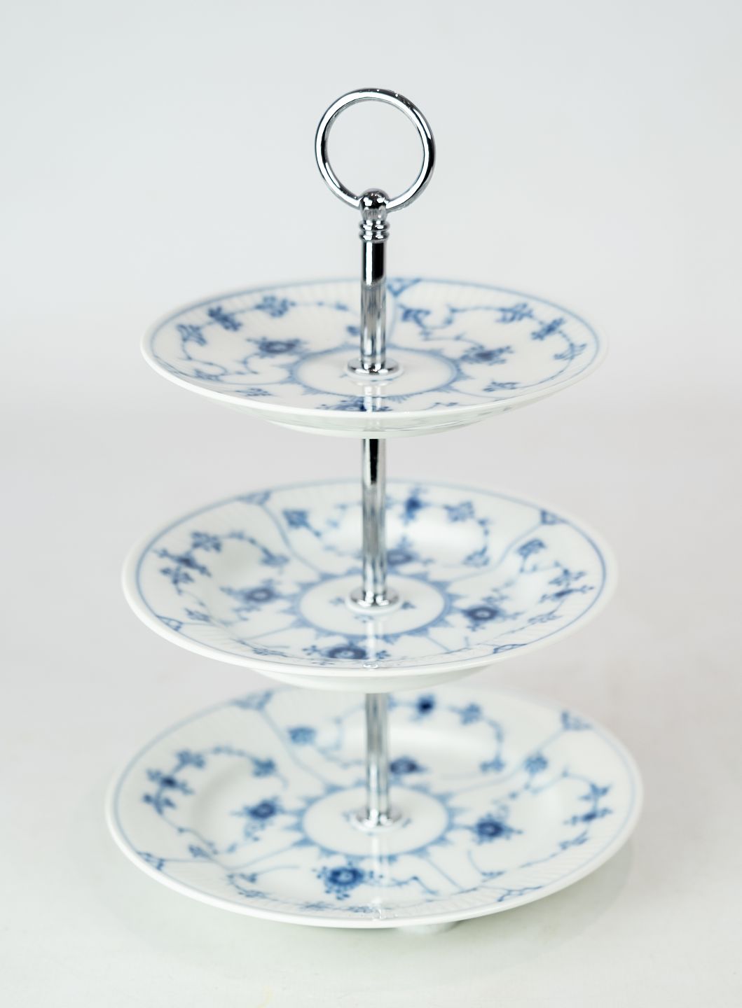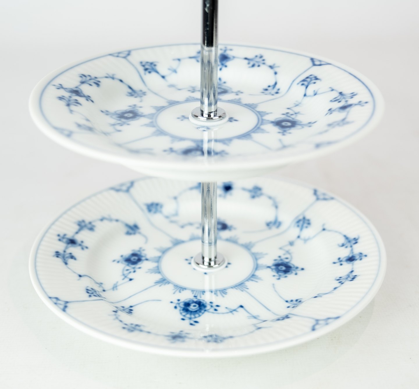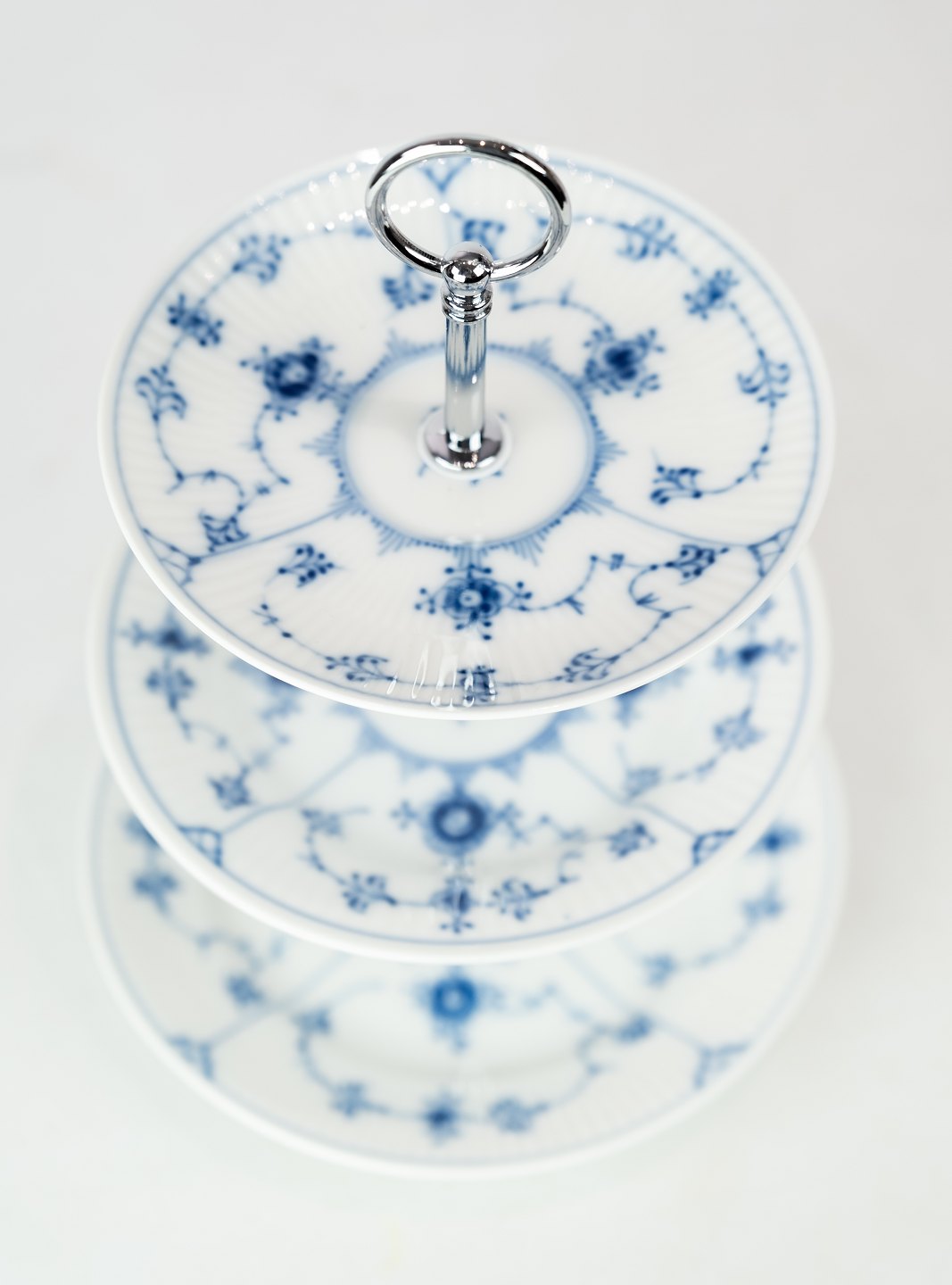 SoldThree part cake center piece blue fluted, no.: 1/181-182 by Royal Copenhagen.