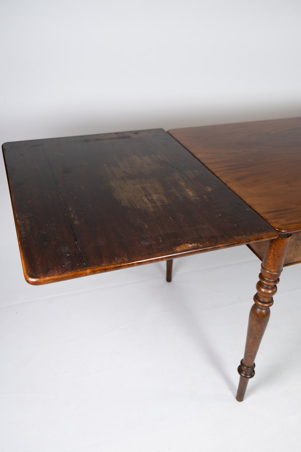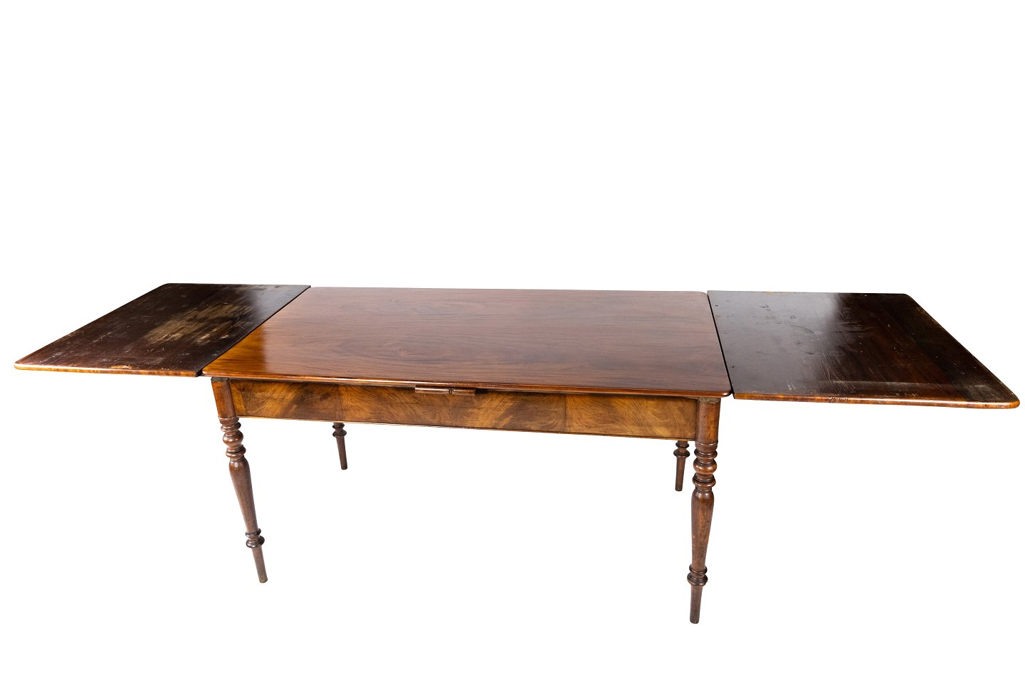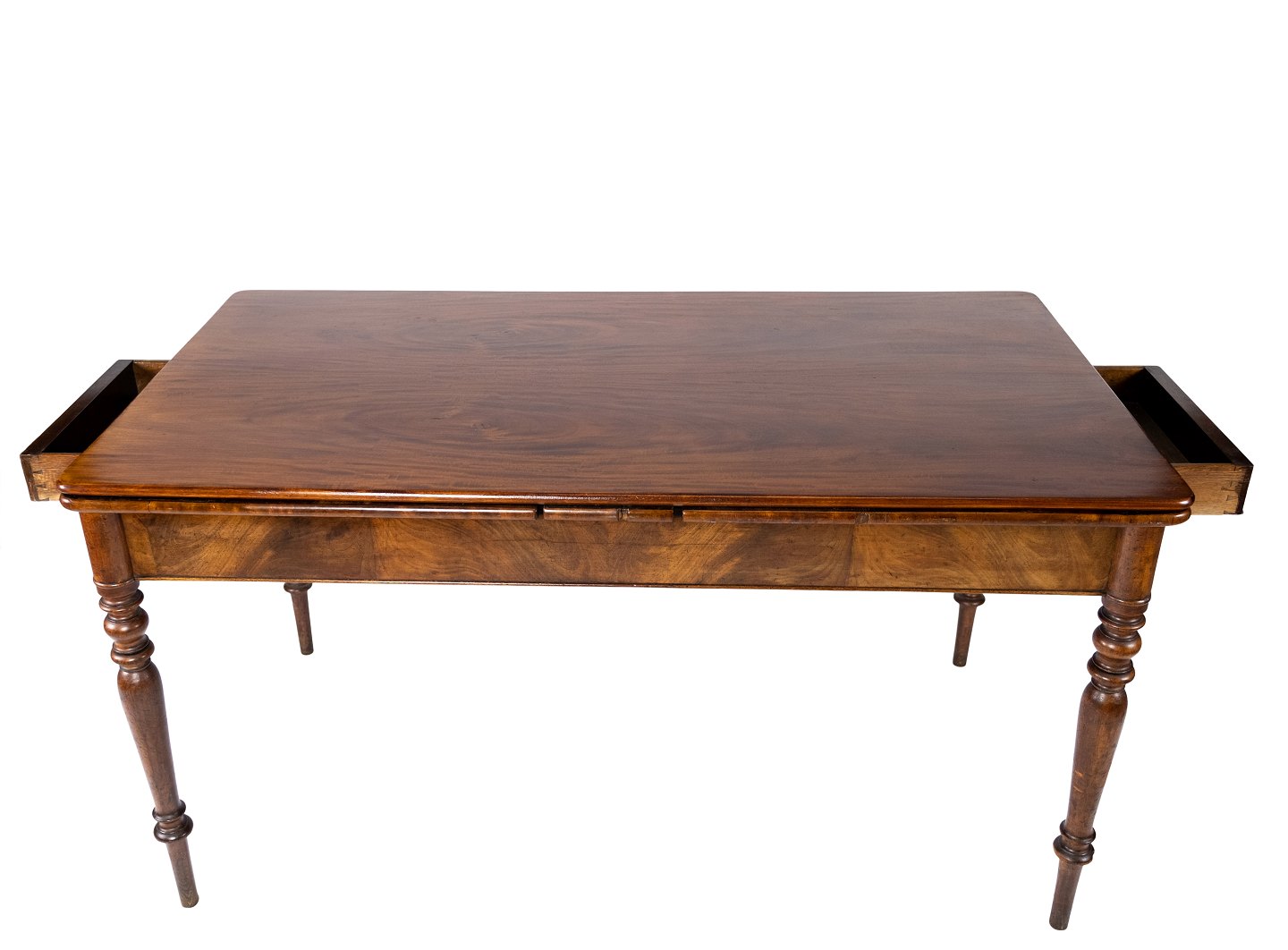 Late Empire desk/dining table in mahogany with extensions, and in great antique condition from the 1840s.