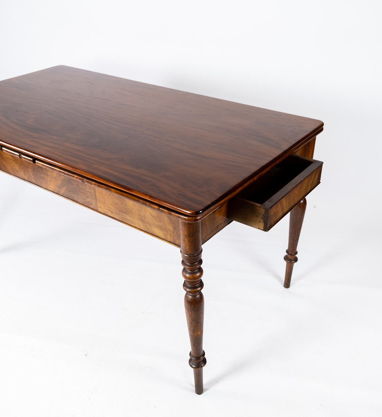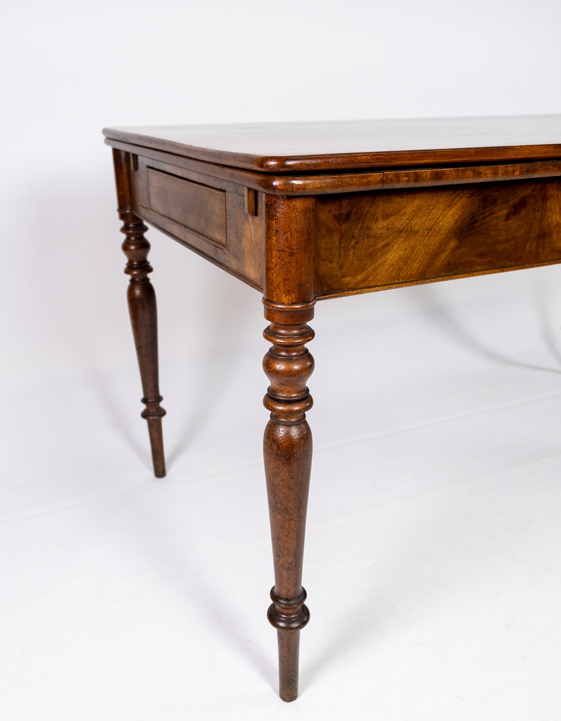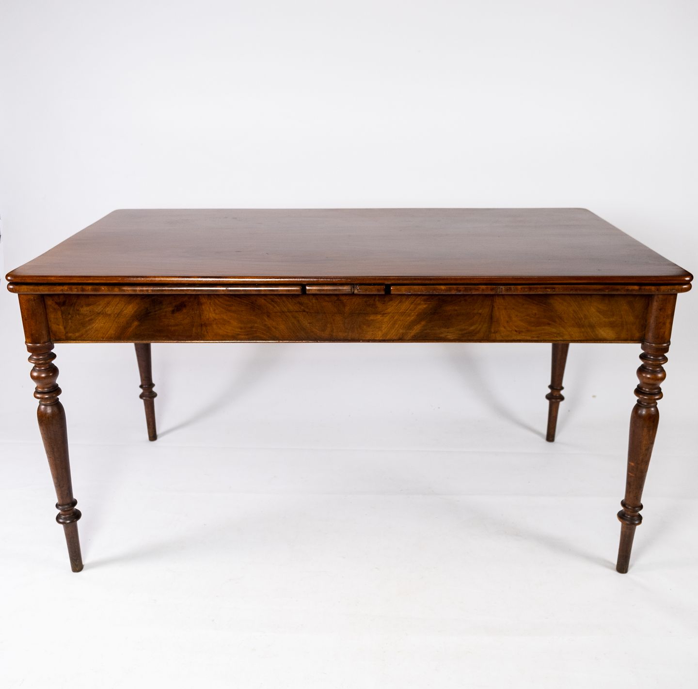 Late Empire desk/dining table in mahogany with extensions, and in great antique condition from the 1840s.