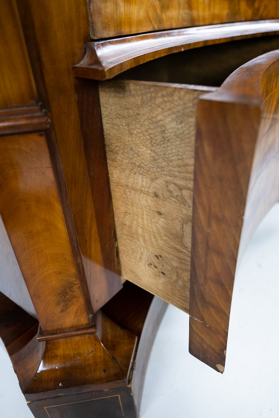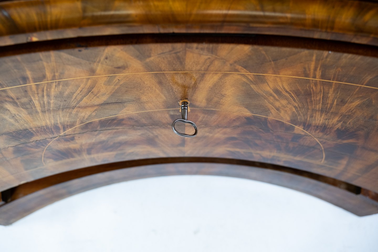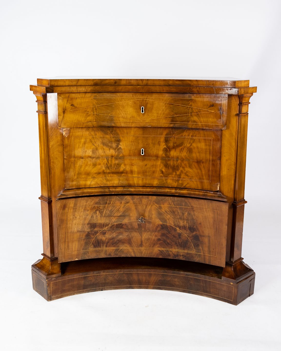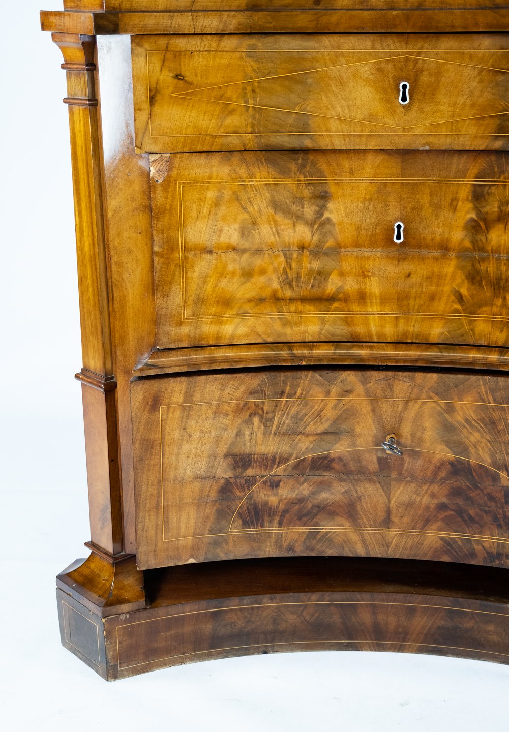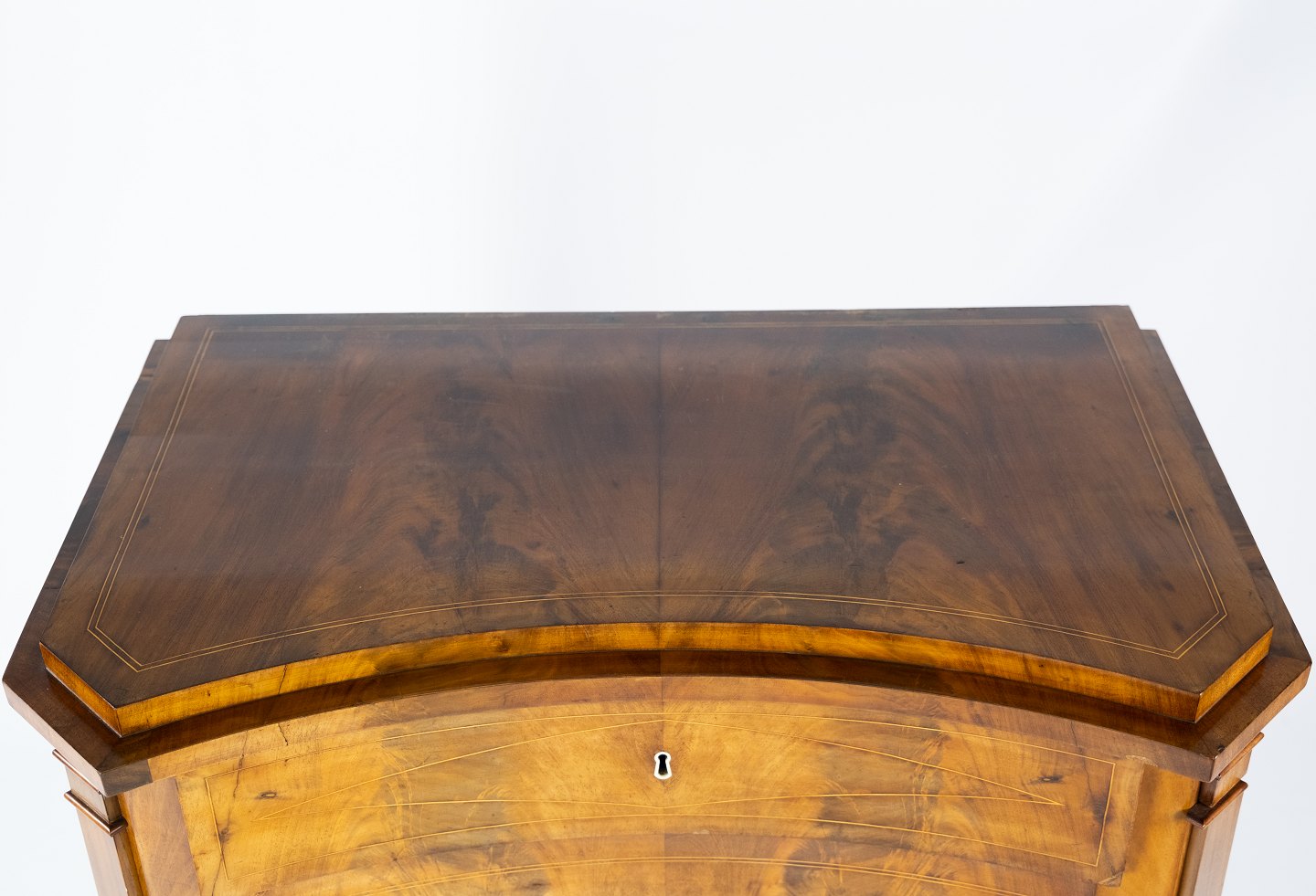 Southern German chest of drawers of mahogany with inlaid wood in great antique condition from the 1840s.