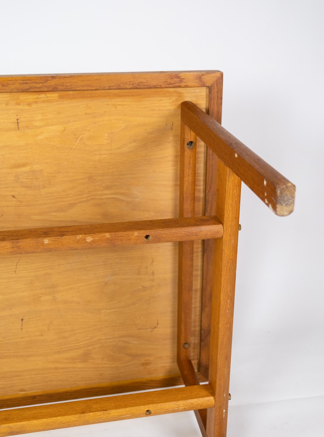 Sofabord i sæbebehandlet eg designet af Hans J. Wegner fra 1960erne. Bordet er i flot brugt stand.