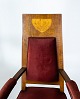 Sæt af to armstole af valnød med intarsia og polstret med rød velour fra omkring 1910. Stolene er i flot brugt stand.