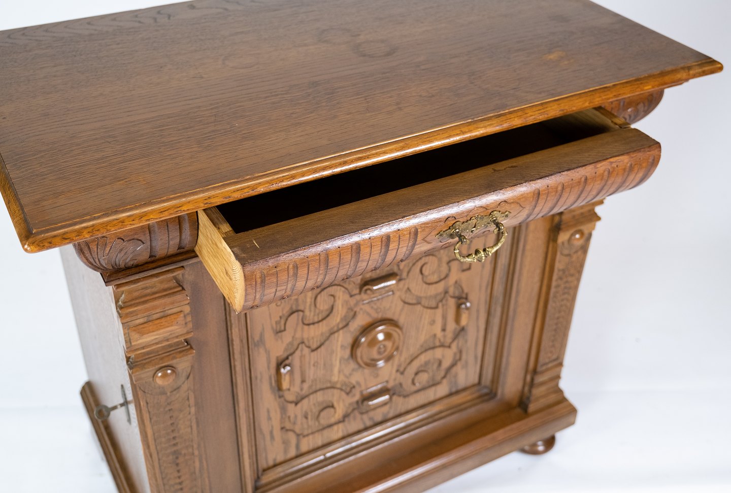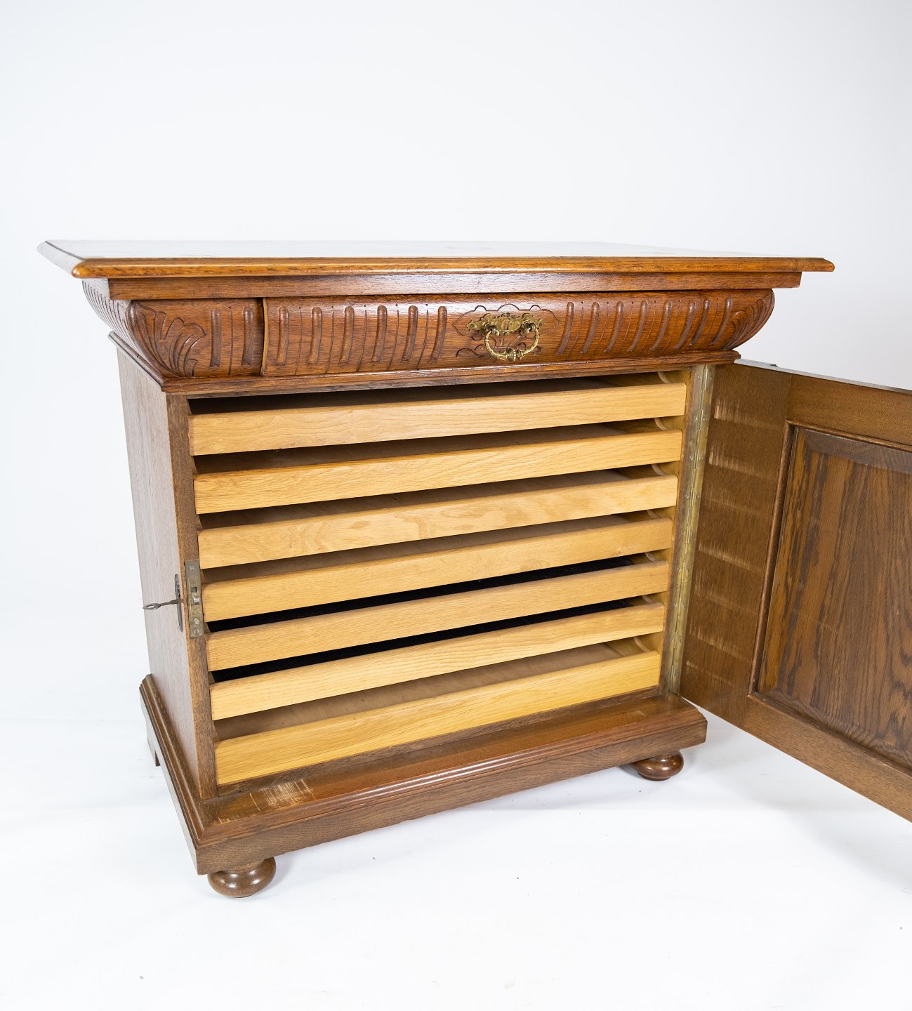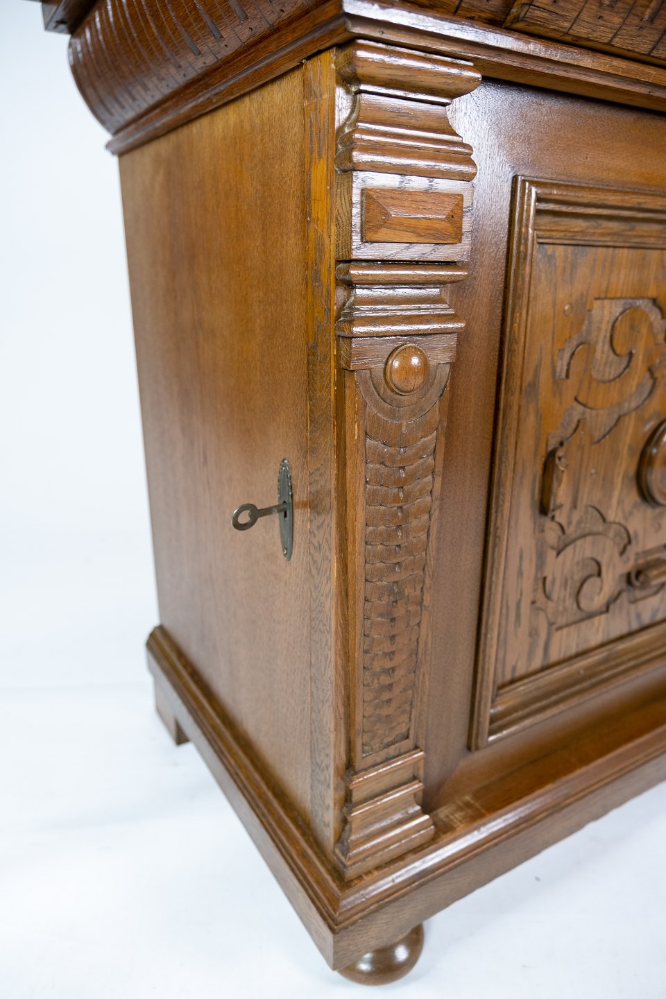 Cabinet of oak with carvings, in great antique condition from the 1920s.