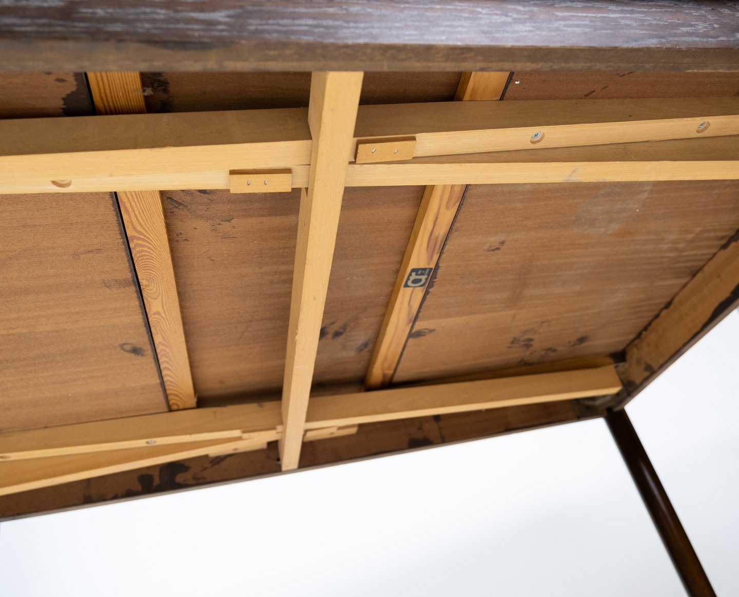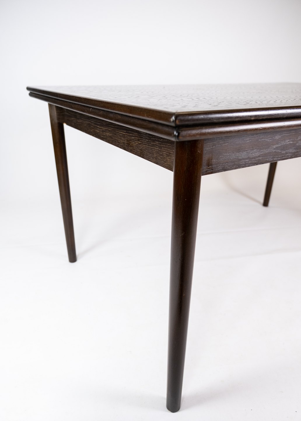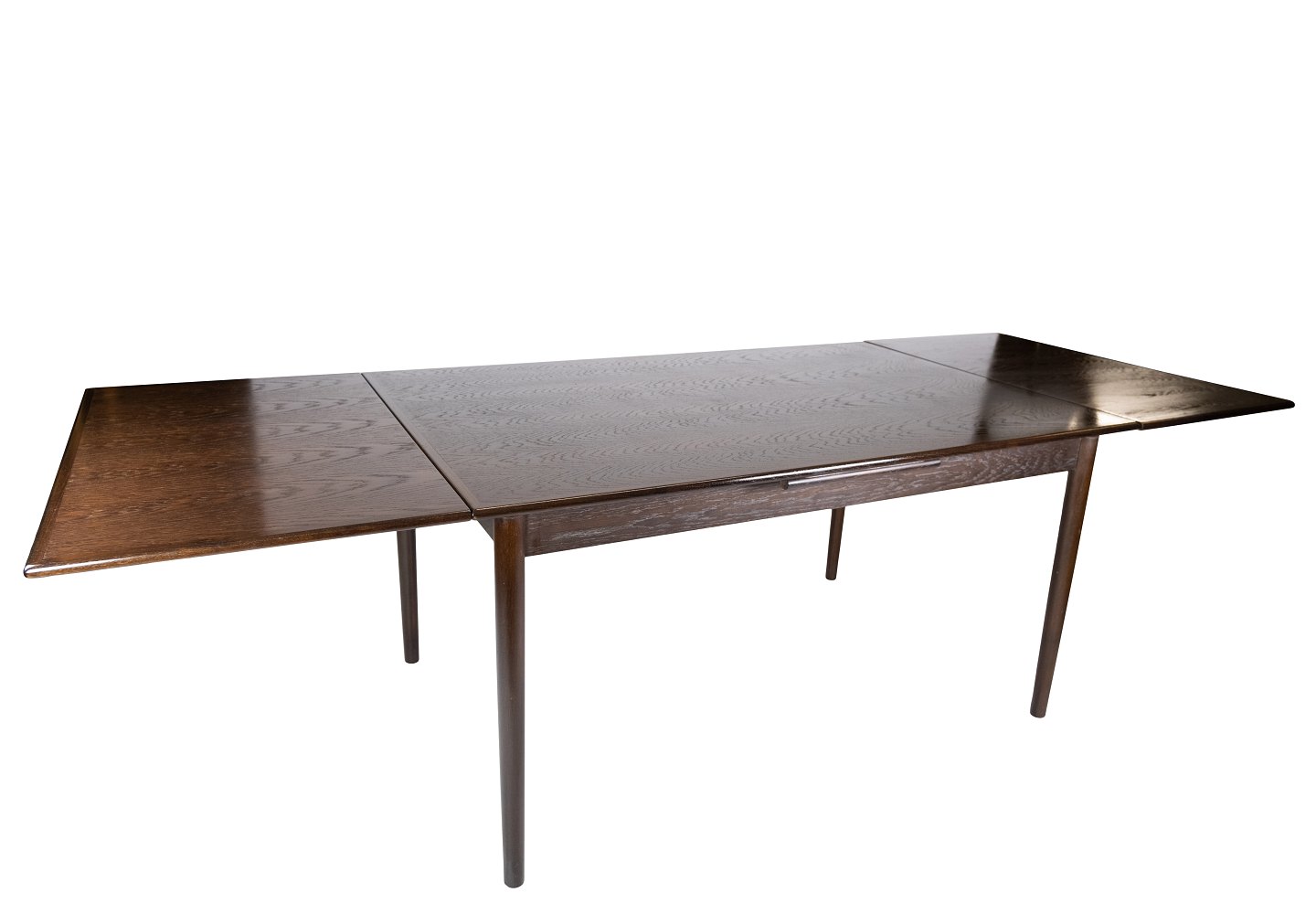 Dining table in dark oak with extensions of danish design from the 1960s. The table is in great vintage condition.