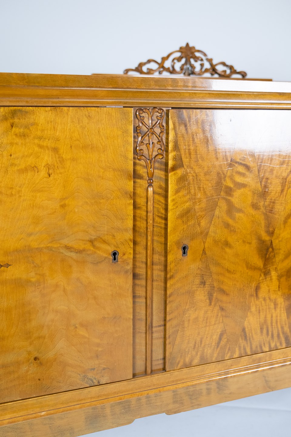 SoldSideboard of birch with carvings, in great antique condition from the 1930s.