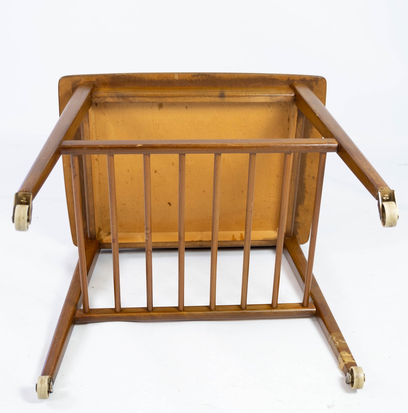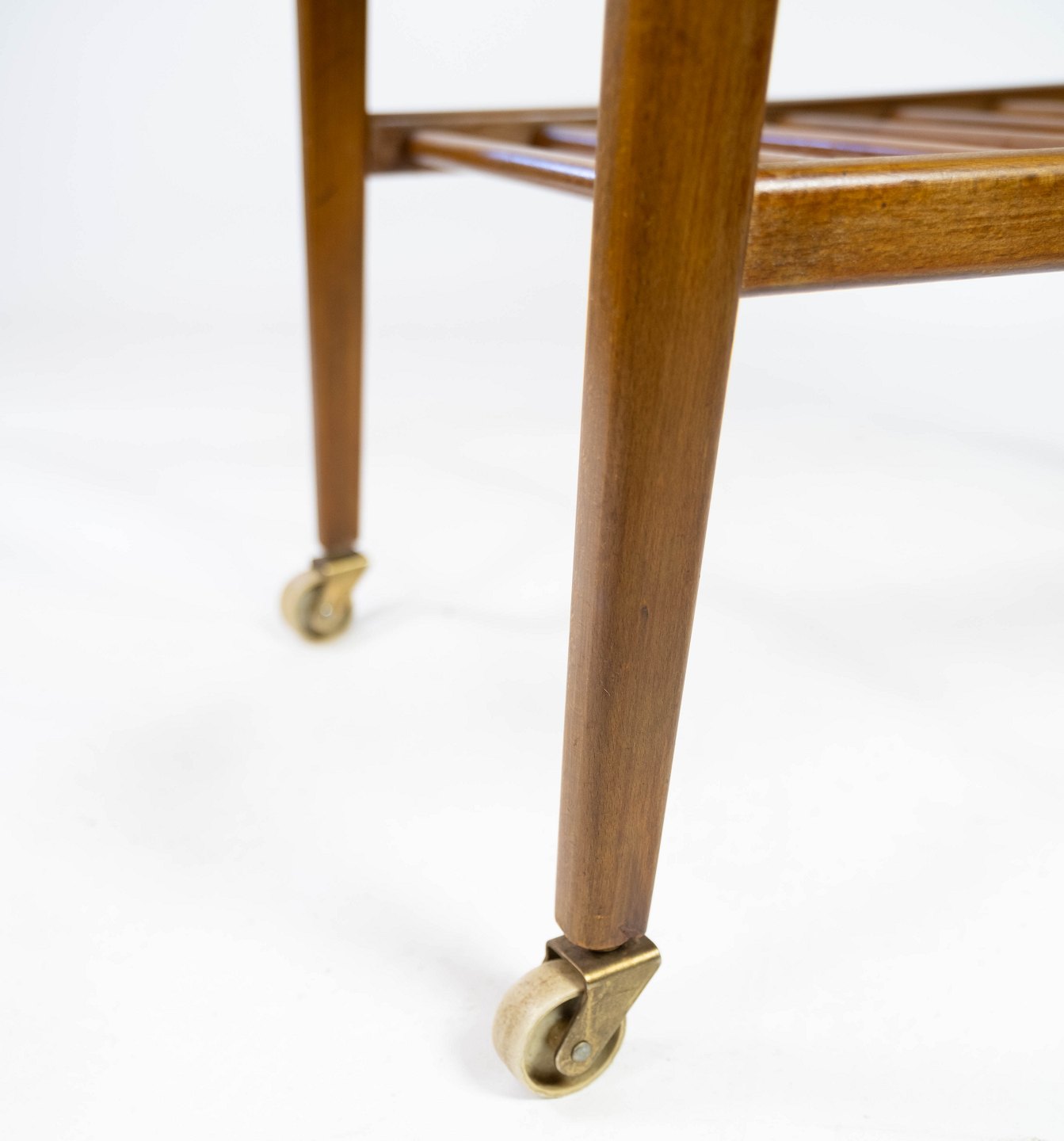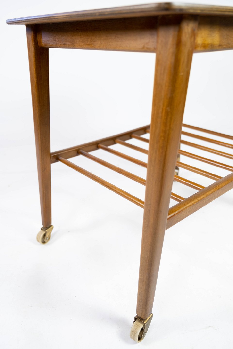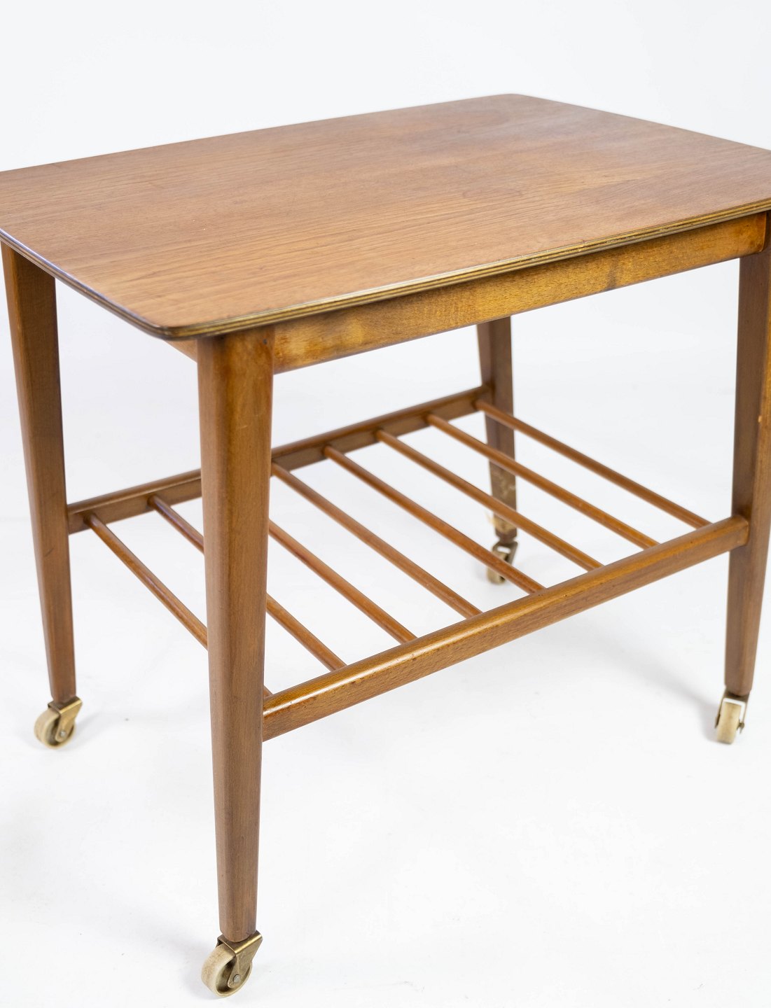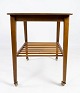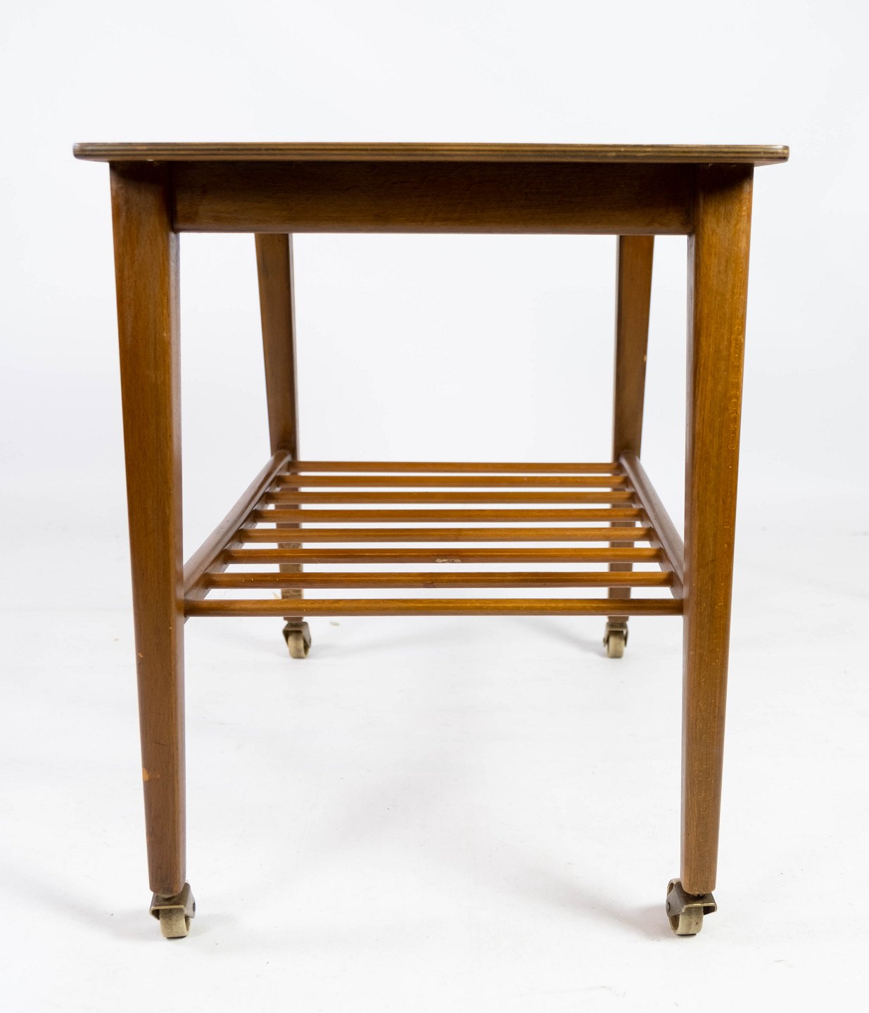 Sidebord med hylde og på hjul, i teak af dansk design fra 1960erne. Bordet er i flot brugt stand.