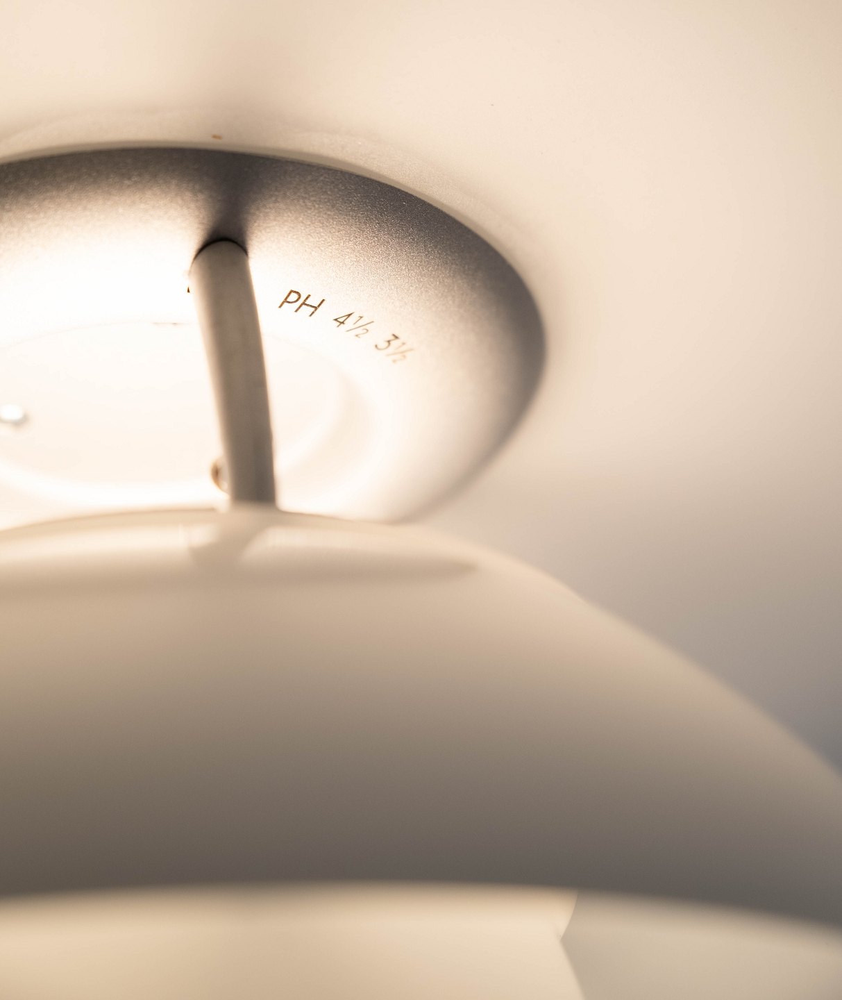 PH 4 1/2-3 1/2 floor lamp of chrome with shades of opaline glass. The lamp is in great vintage condition.