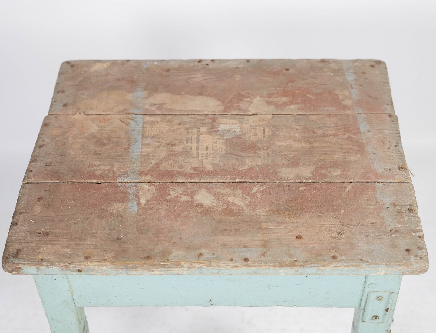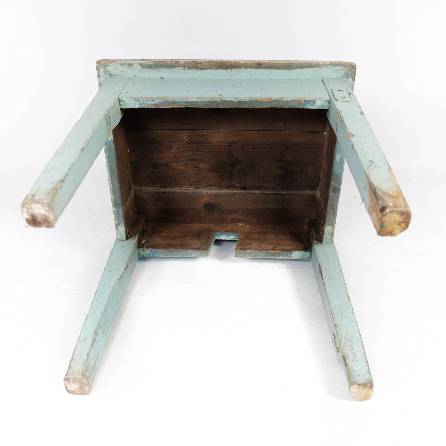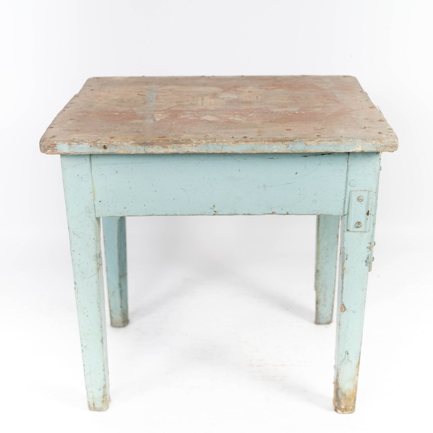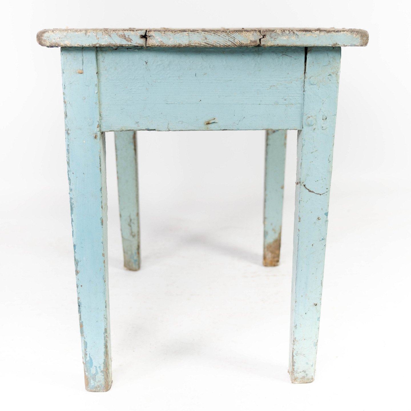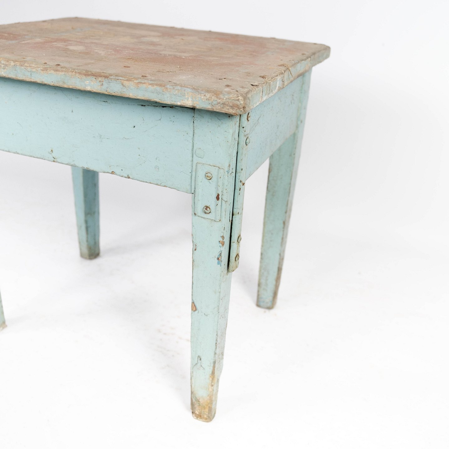 Lavt sidebord med original lyseblå maling, i flot antik stand fra 1860.