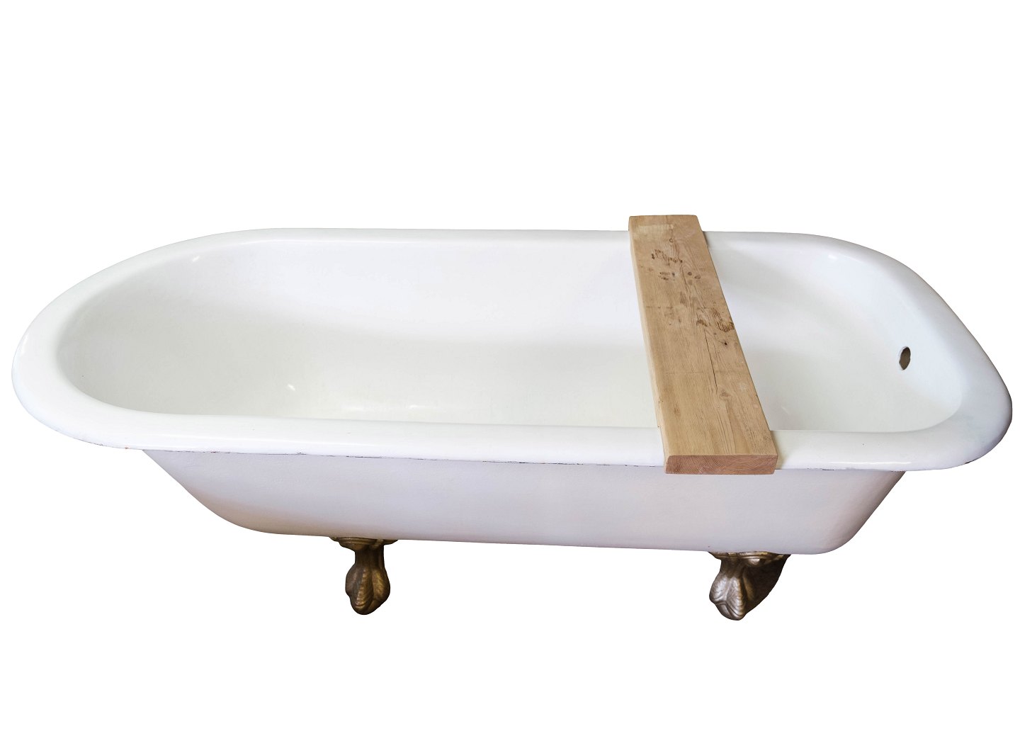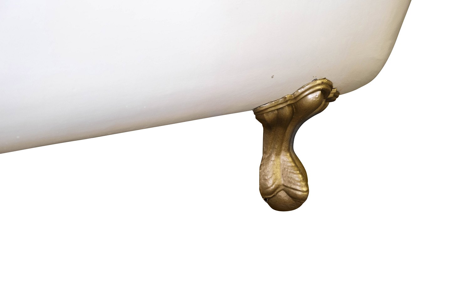 Antique porcelain bath tub on brass feet, in great condition from 1908.