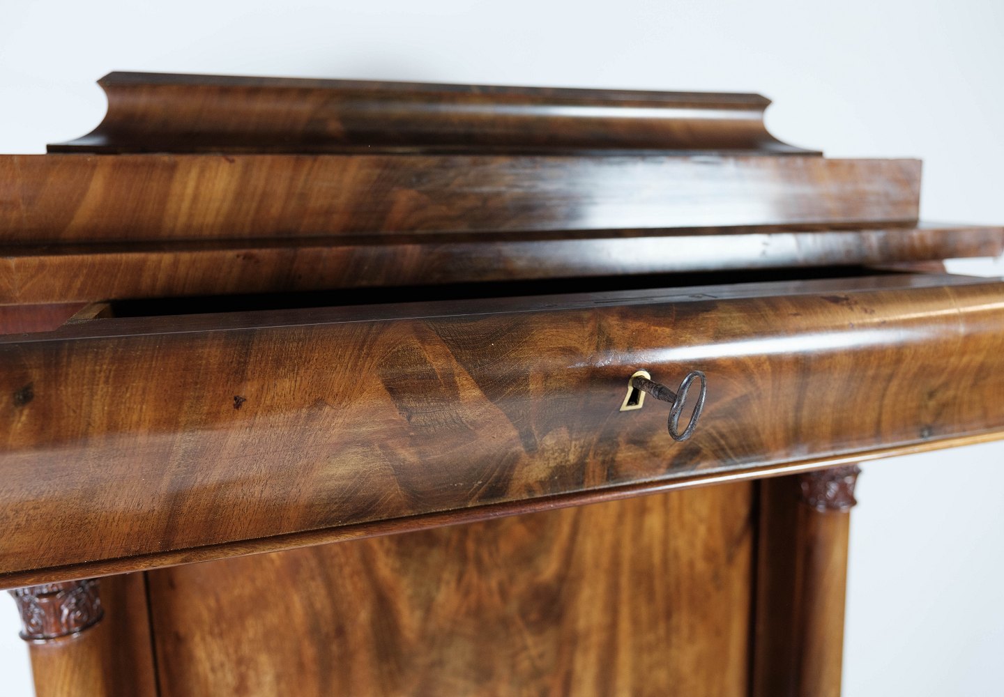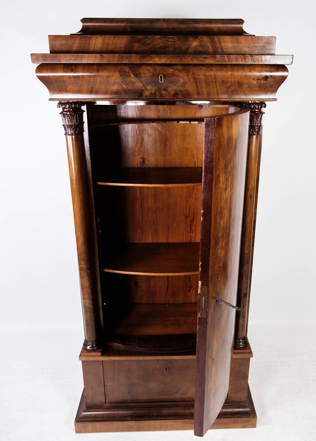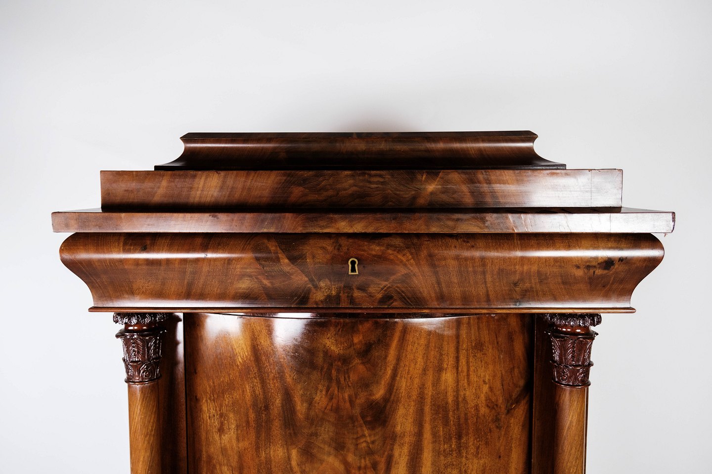Late Empire tall cabinet of dark polished mahogany, in great antique condition from 1840.