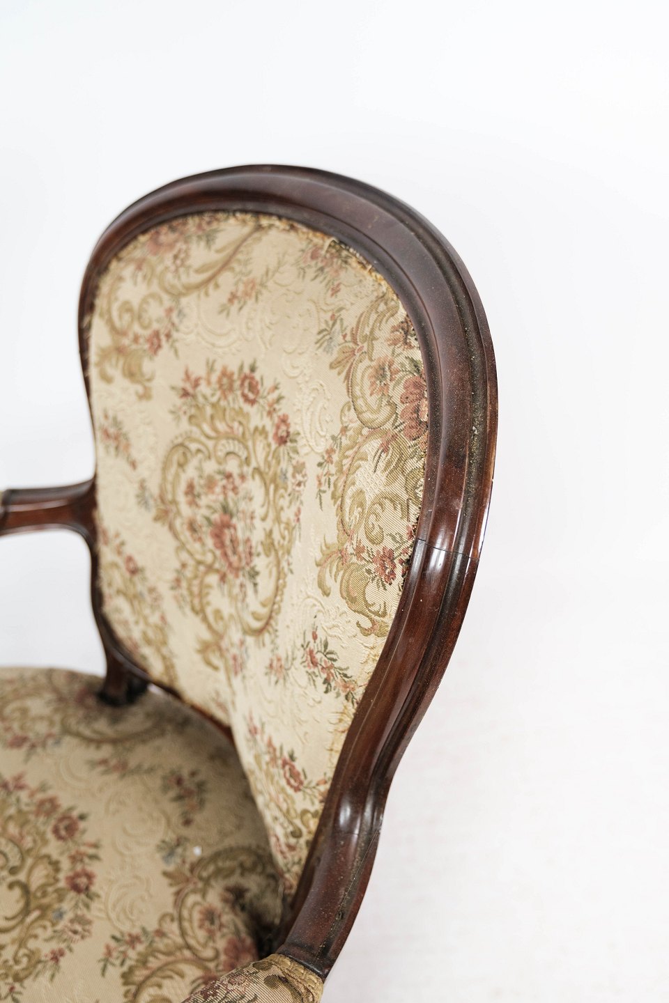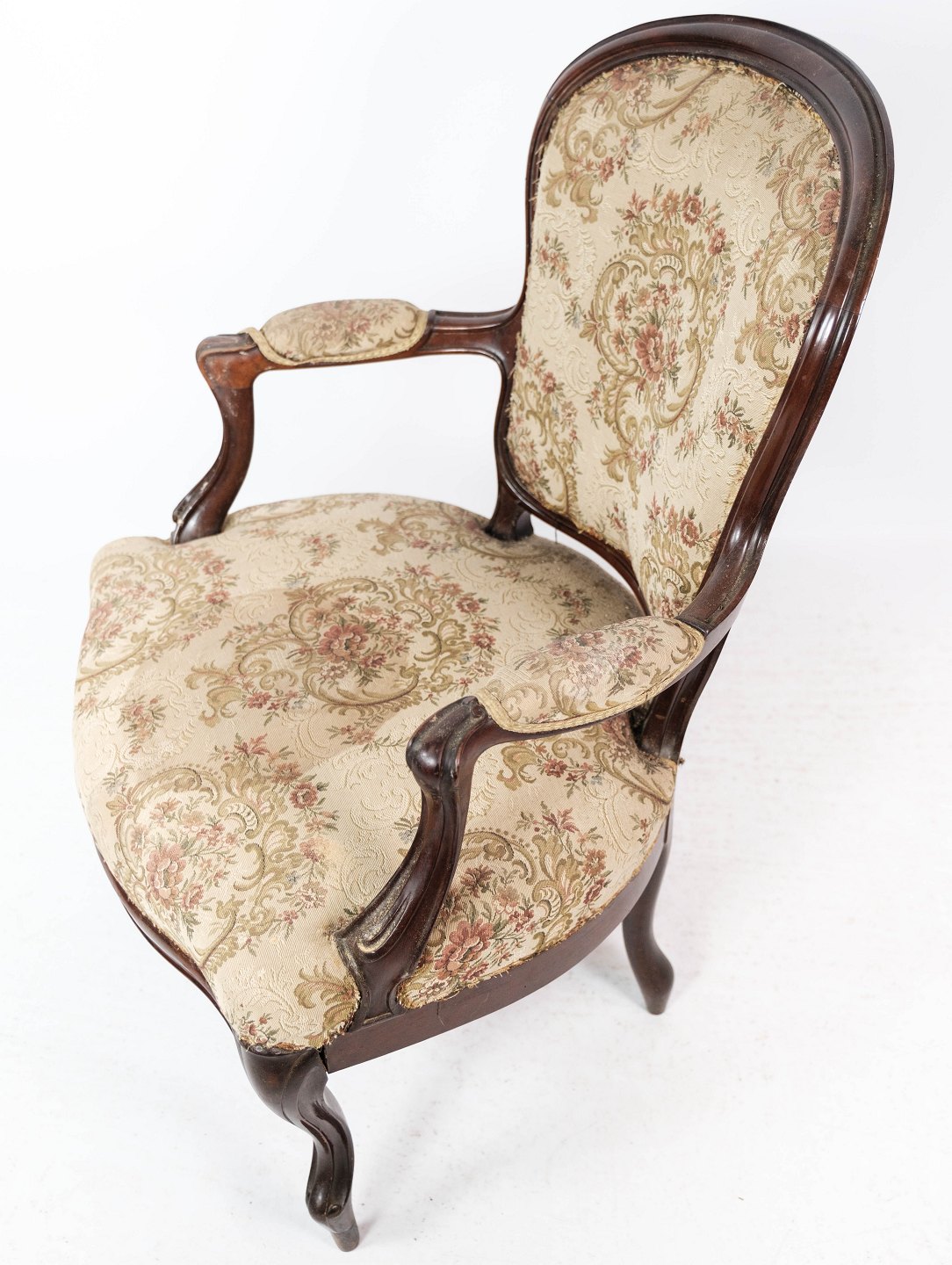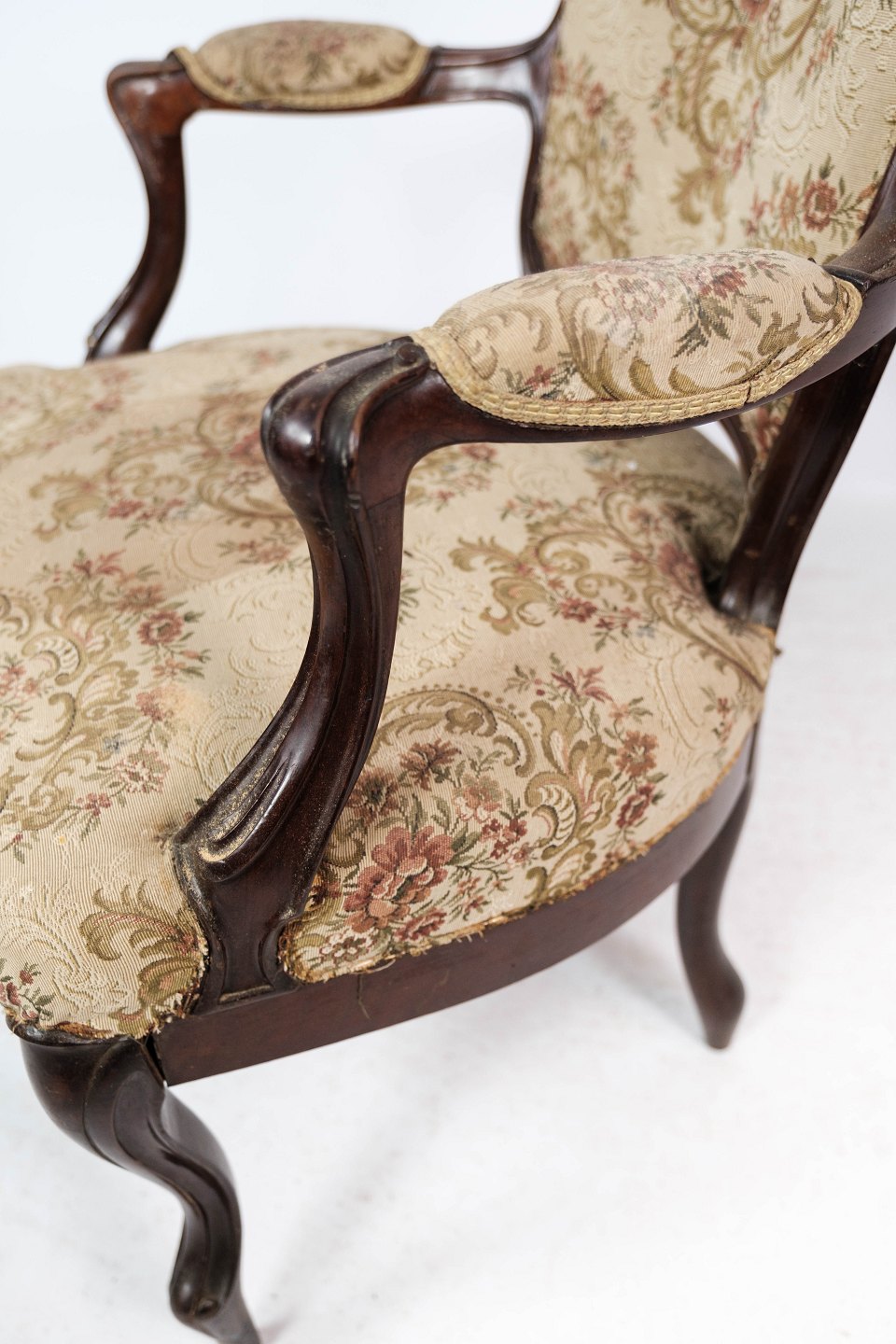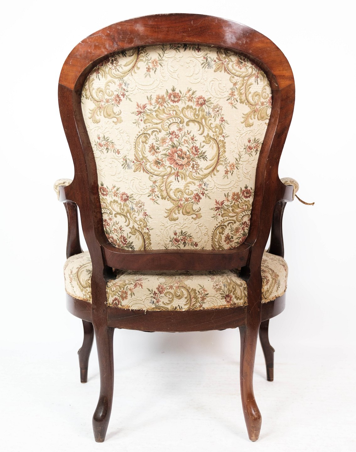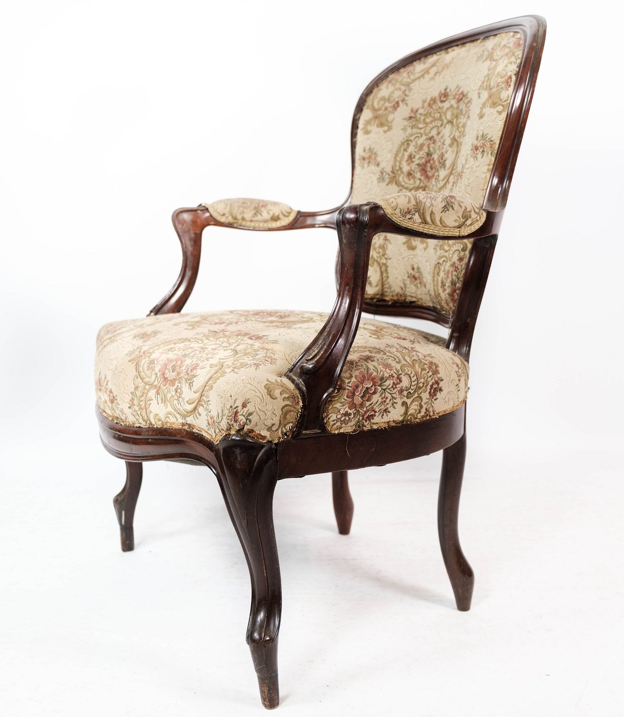 Rococo armchair of rosewood and upholstered with floral fabric, in great antique condition from around 1880.
