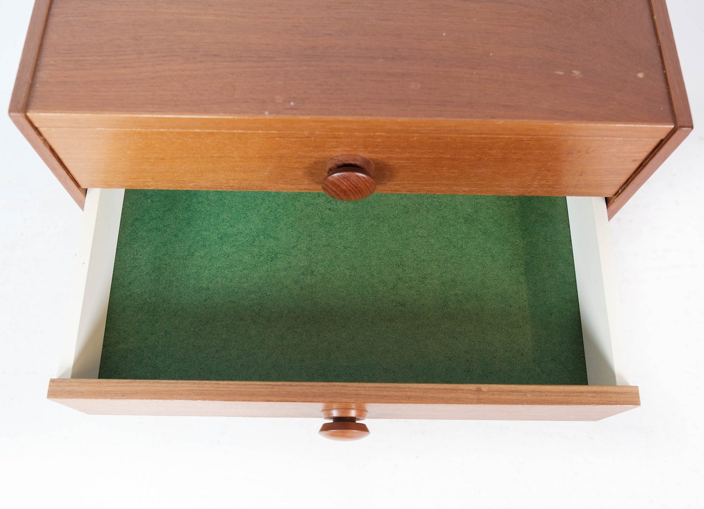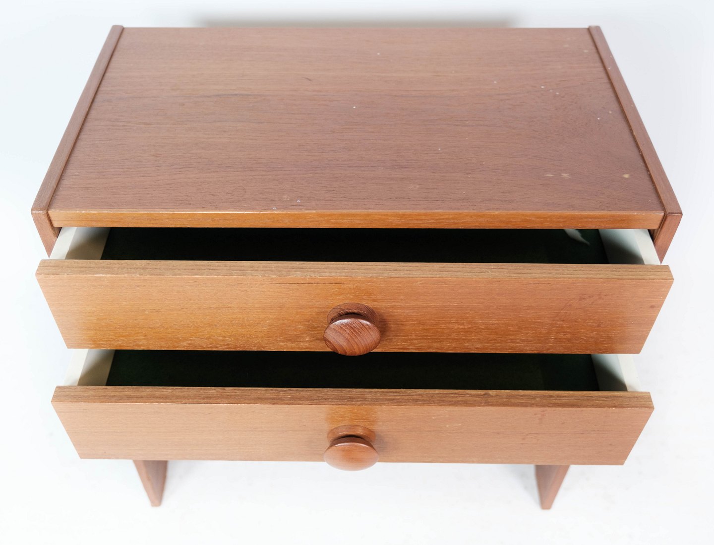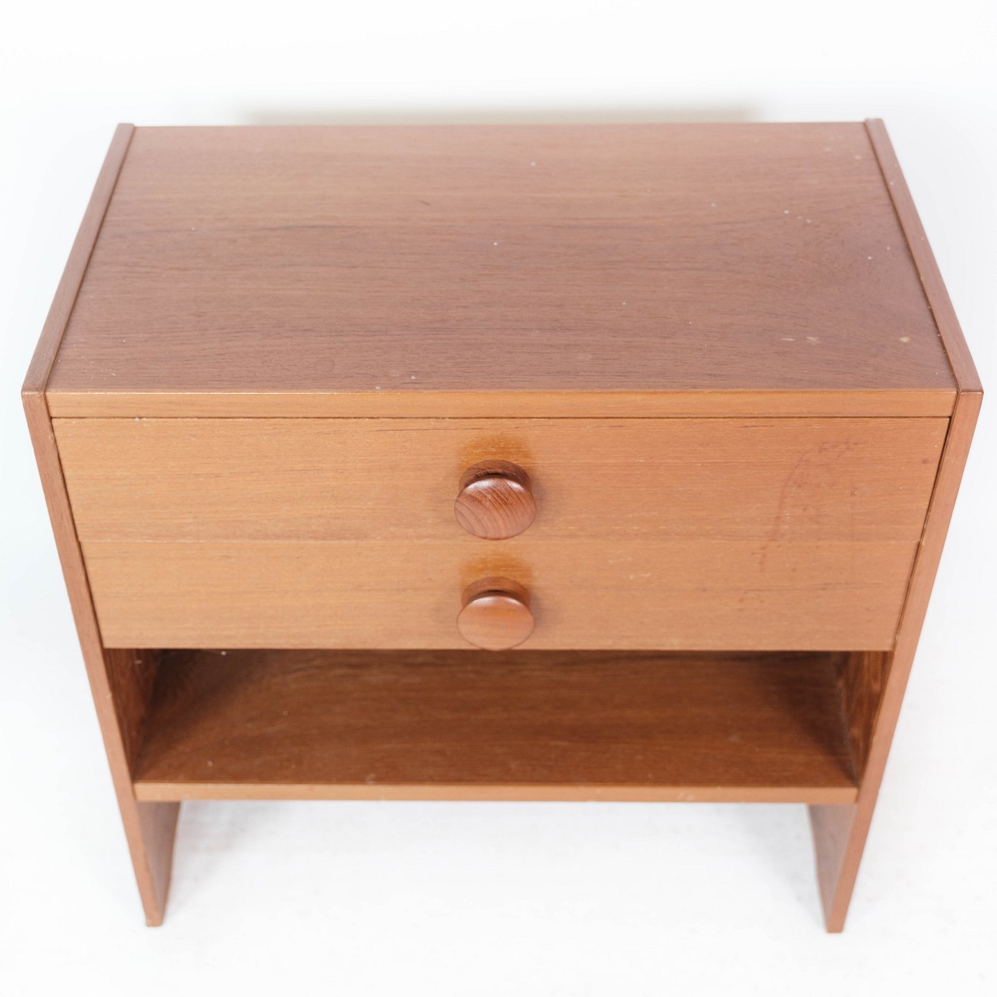 Bedside table with drawers in teak of Danish design manufactured by PBJ Furniture in the 1960s. The table is in great vintage condition.