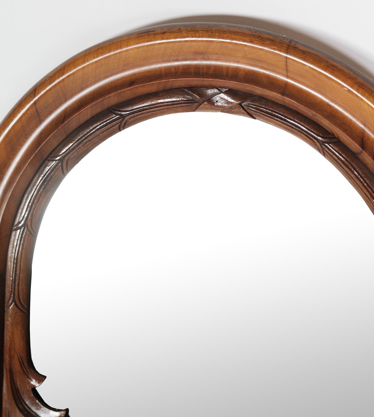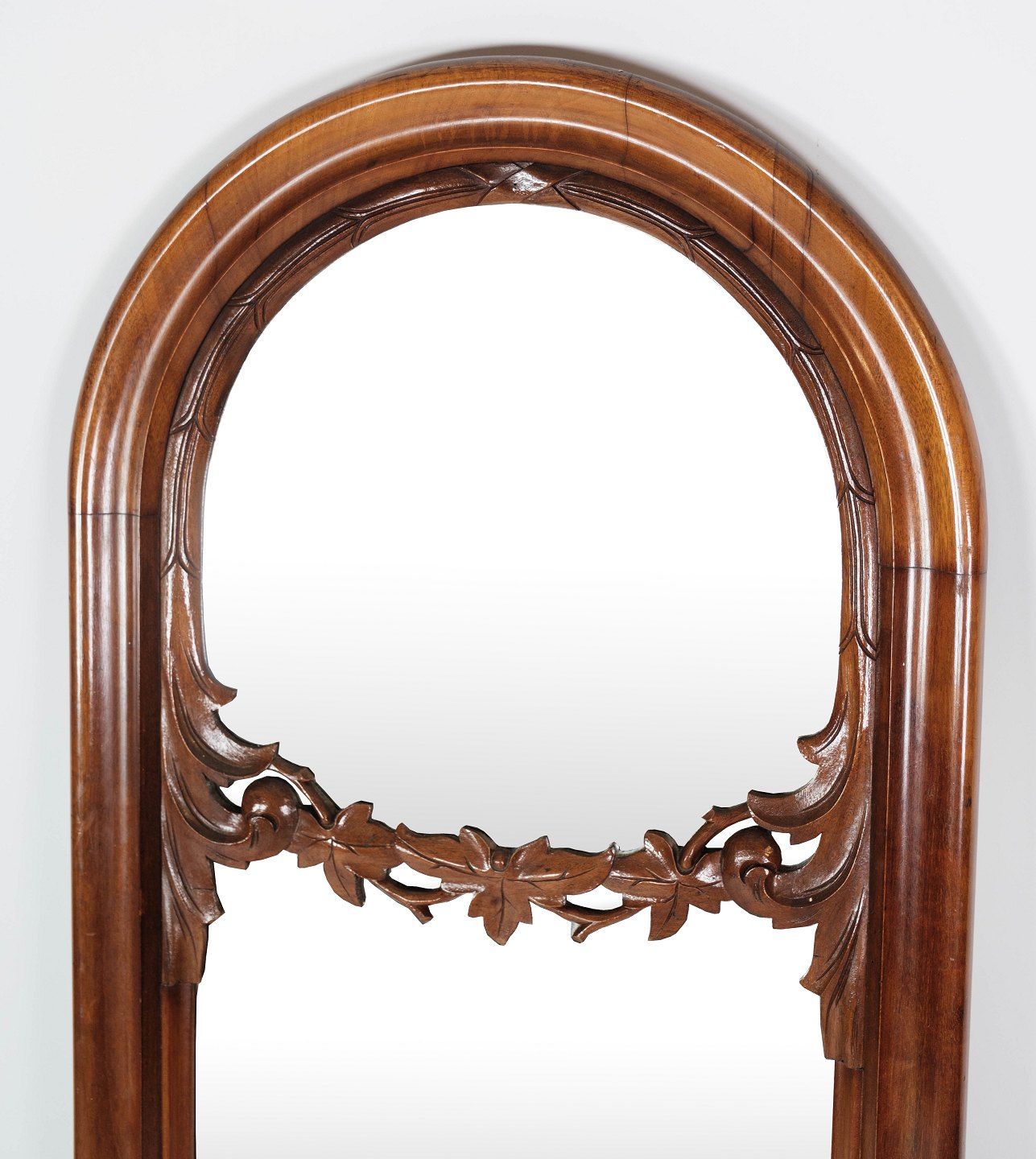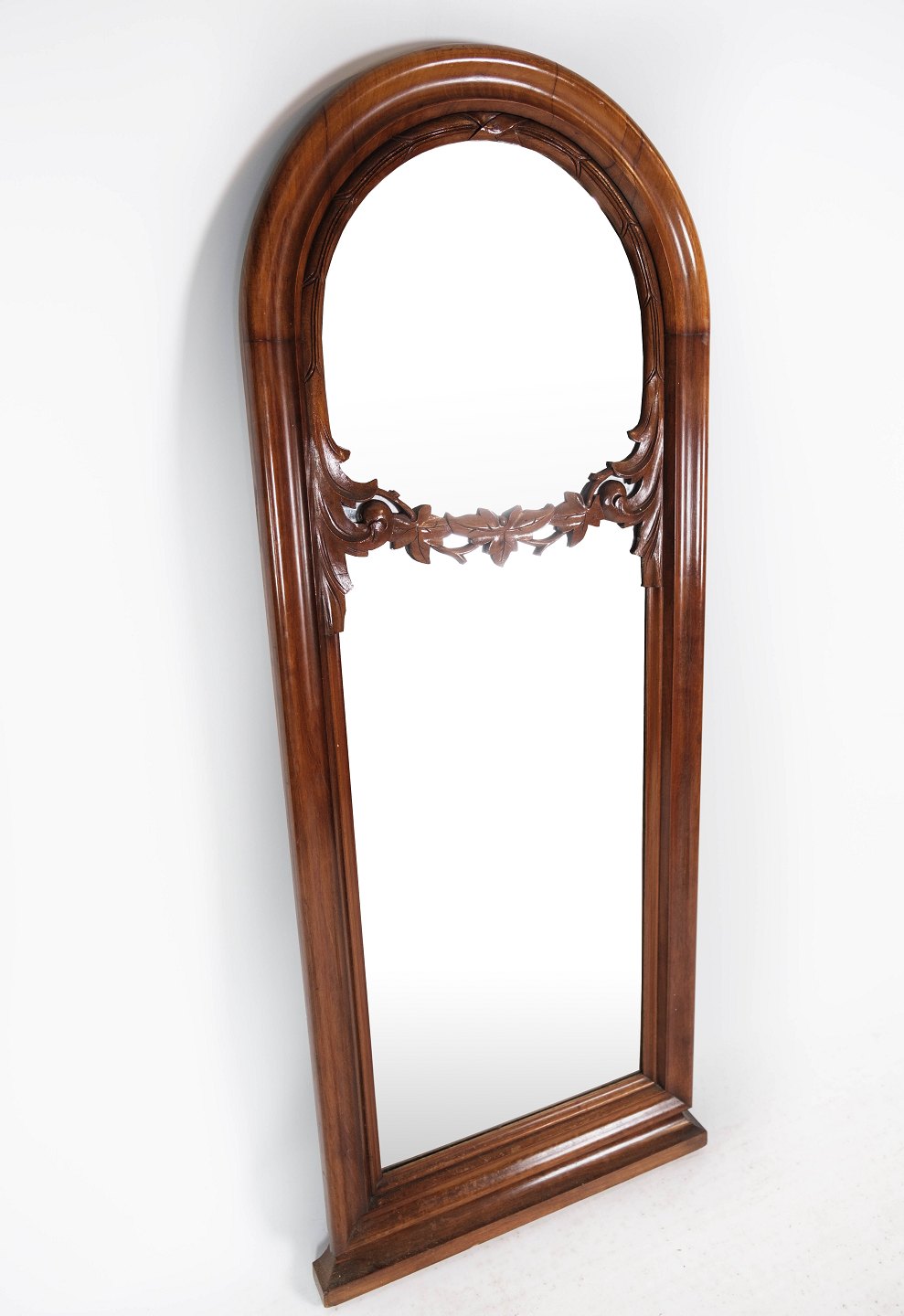 Højt spejl af mahogni, i flot antik stand fra 1880erne.