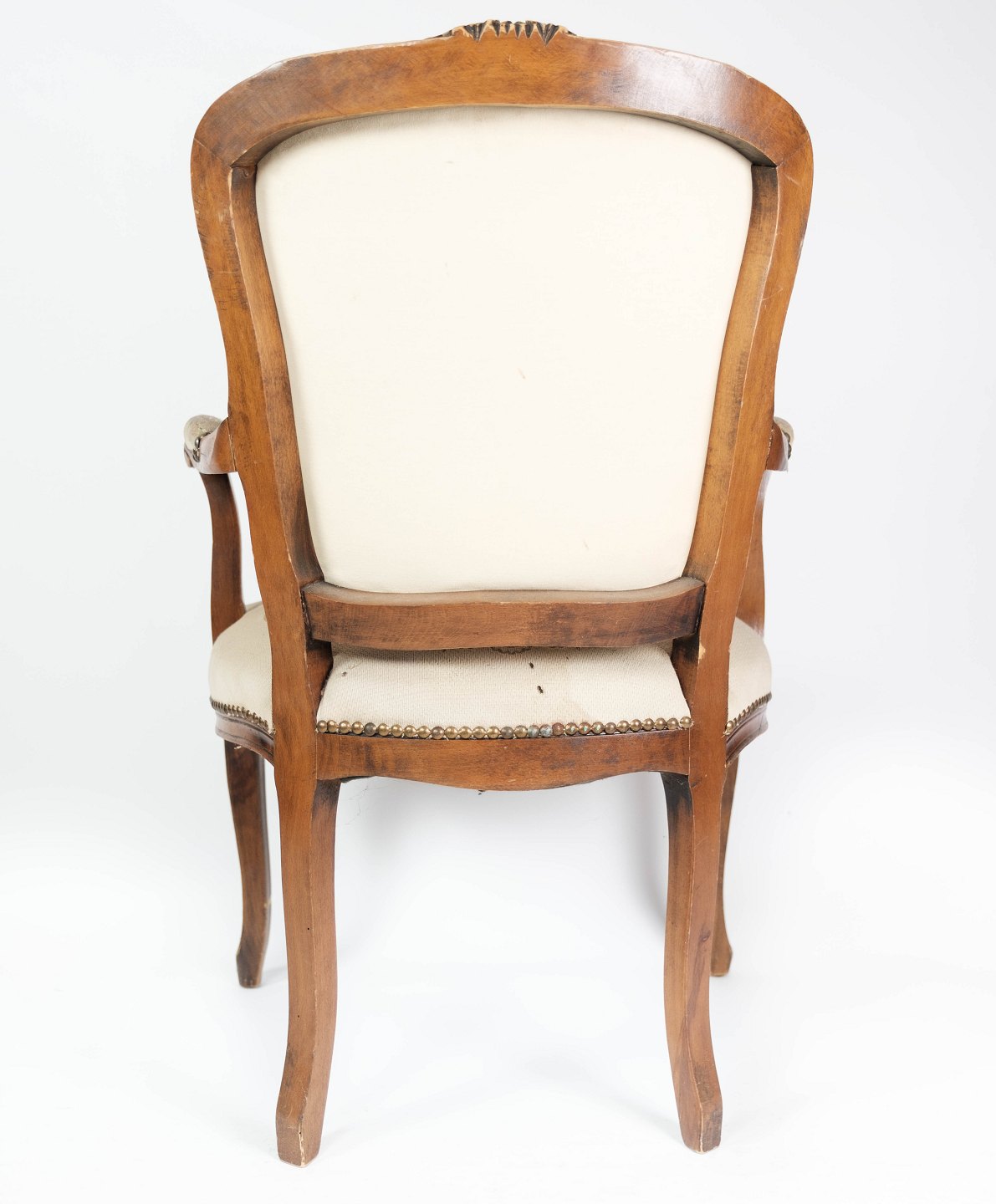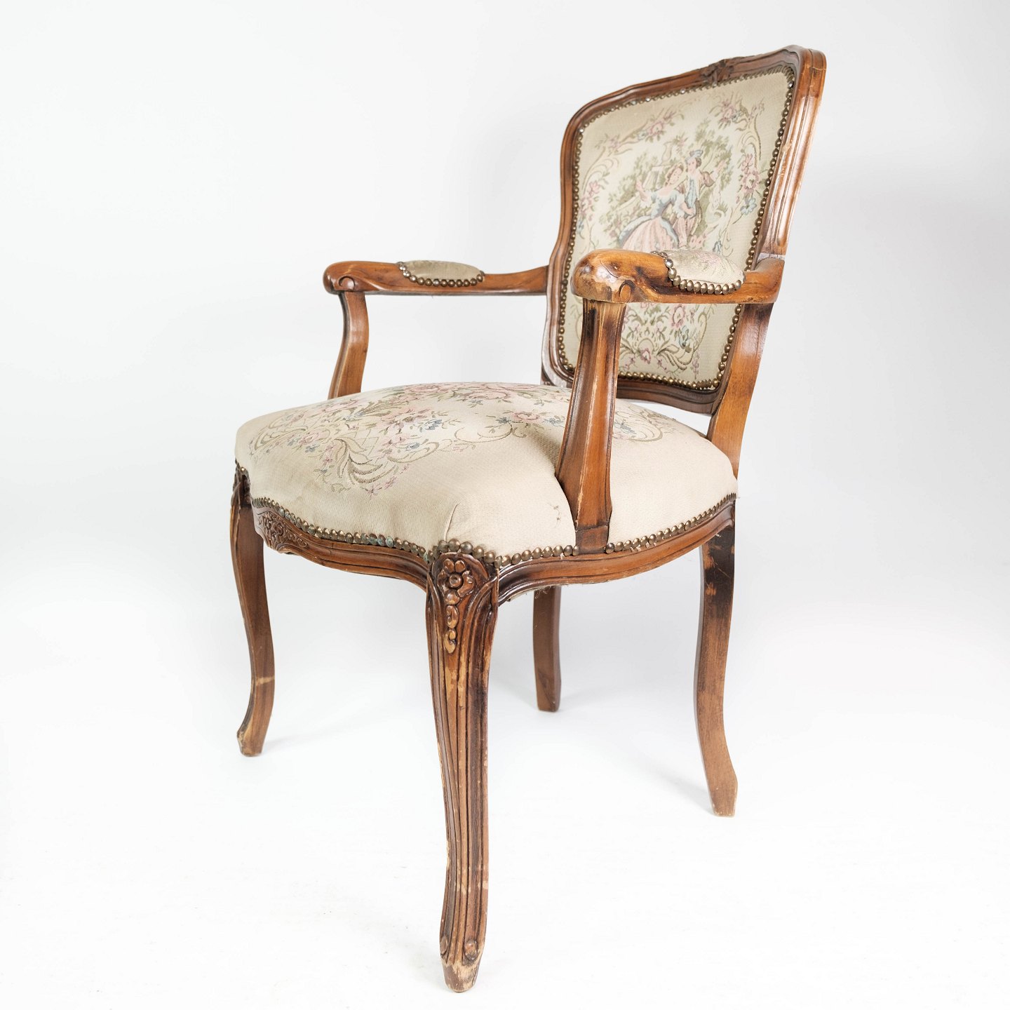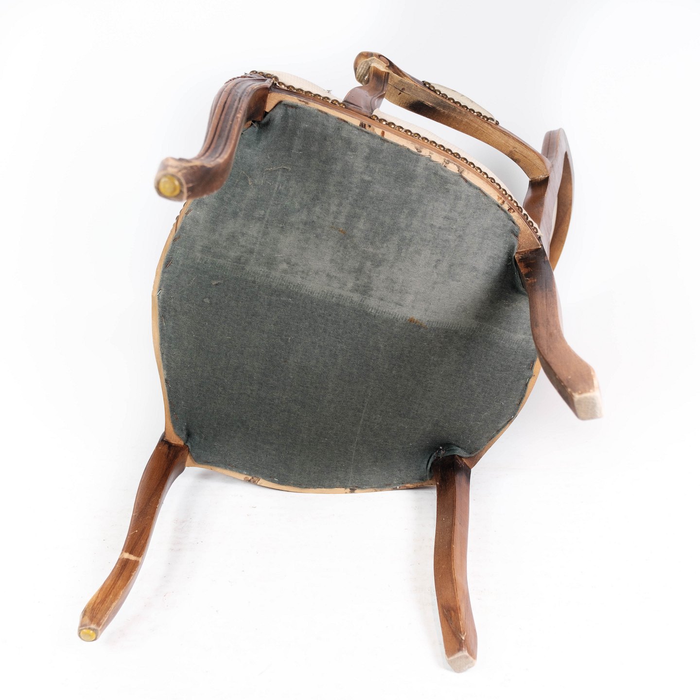 New rococo armchair of light wood and upholstered with light fabric, in great antique condition from the 1930s.