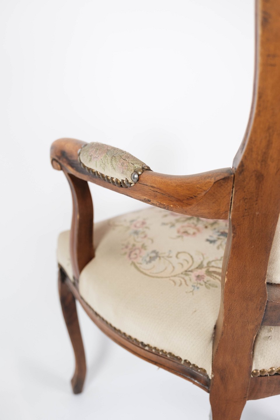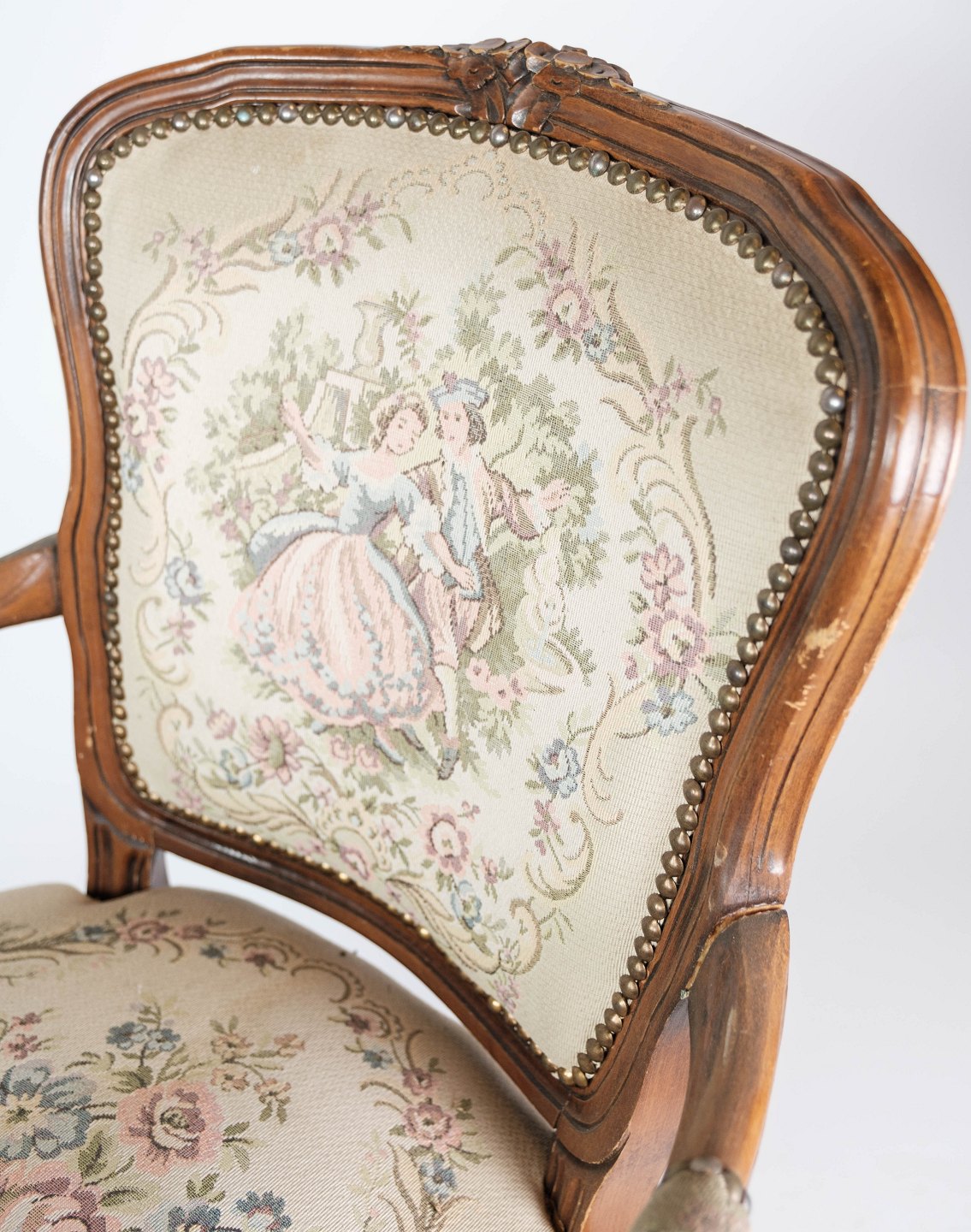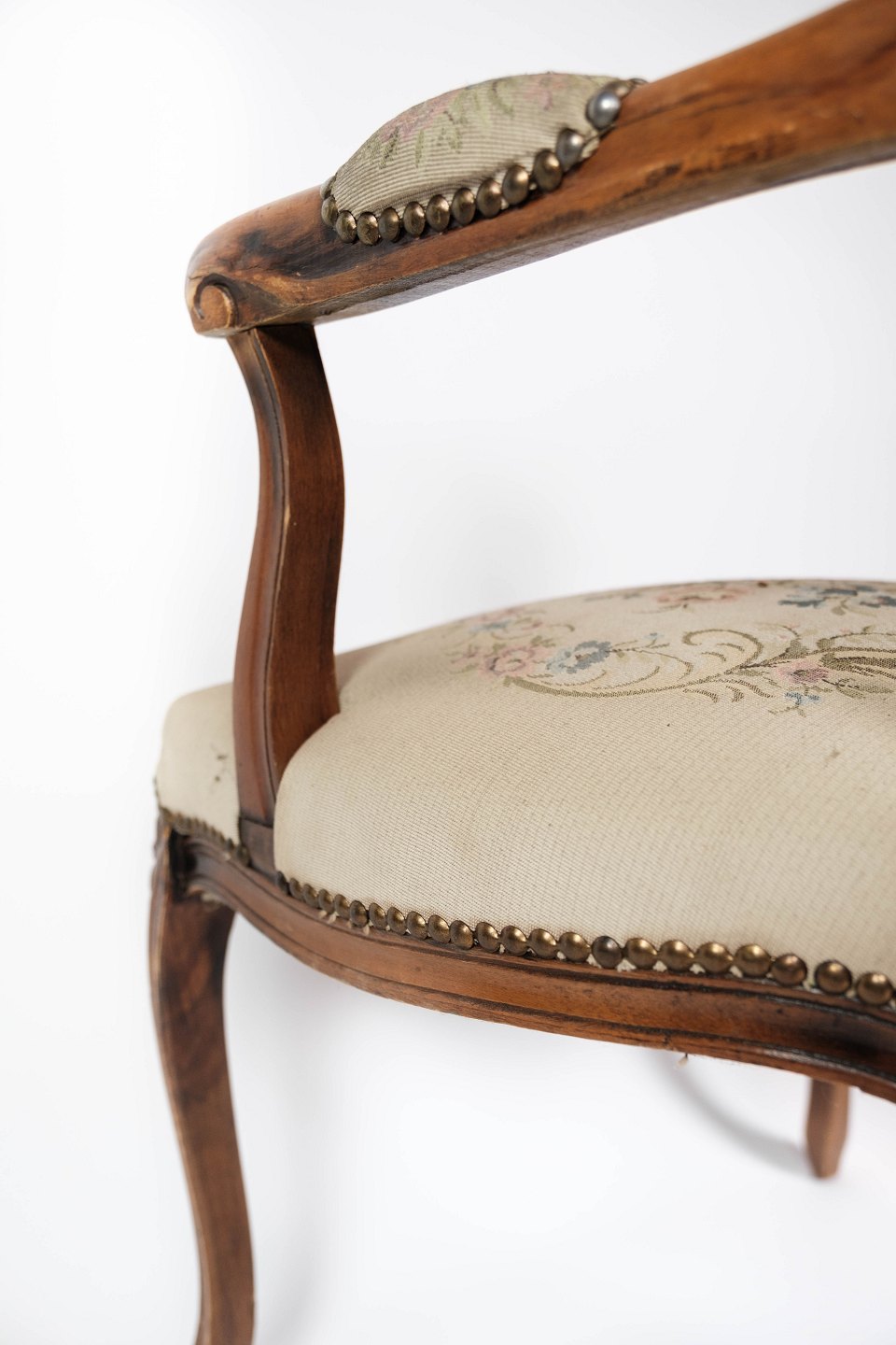 New rococo armchair of light wood and upholstered with light fabric, in great antique condition from the 1930s.