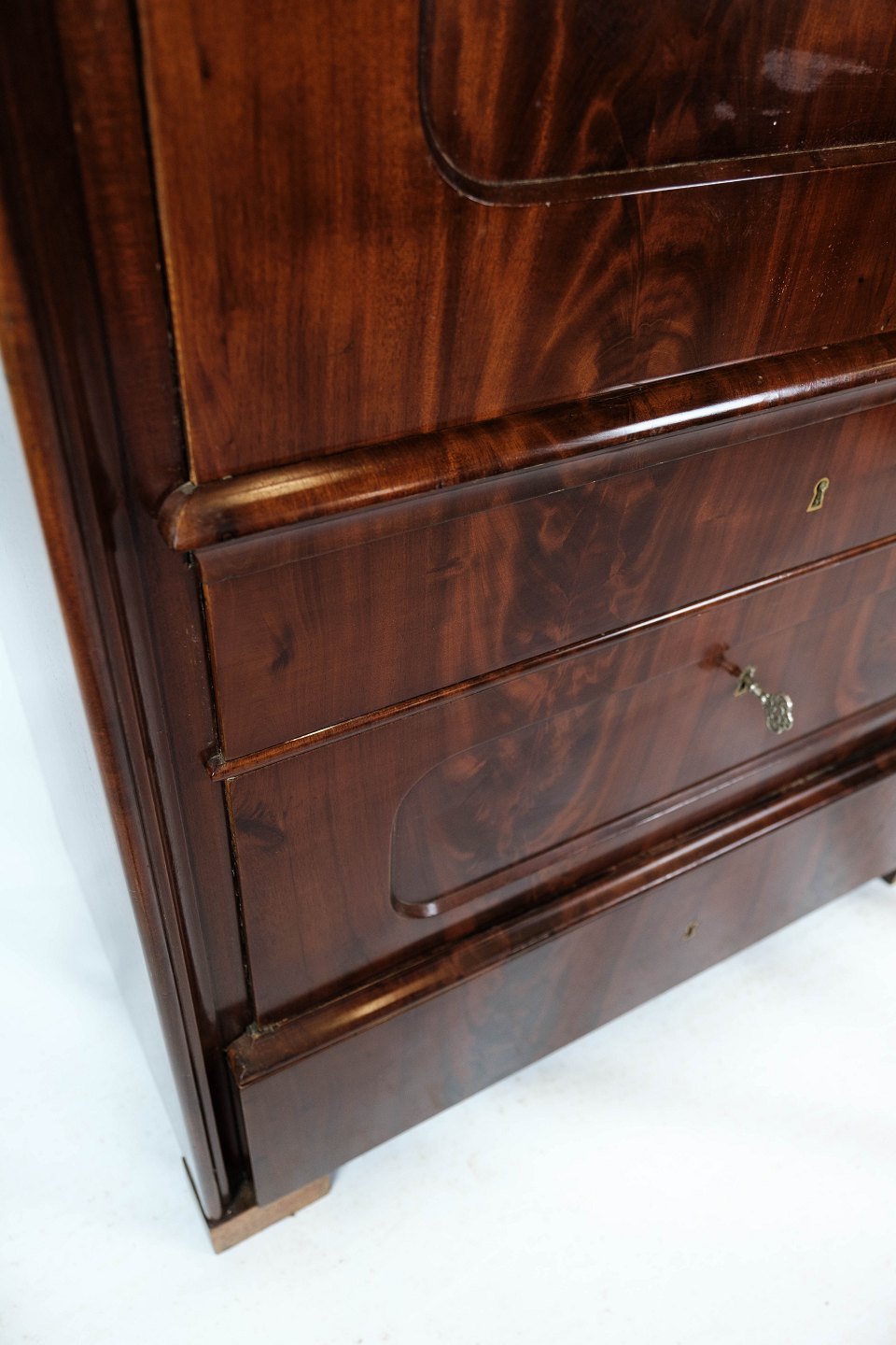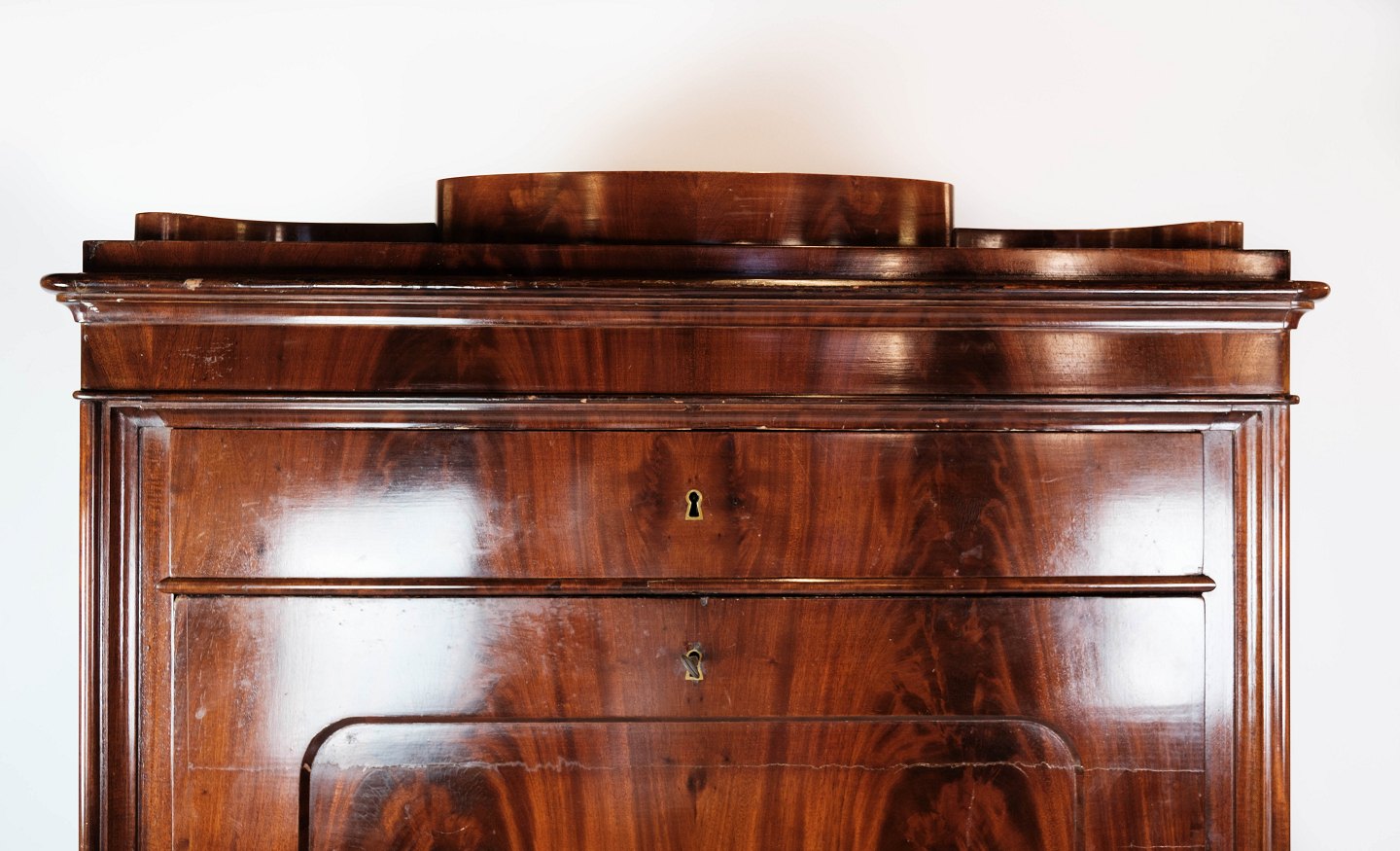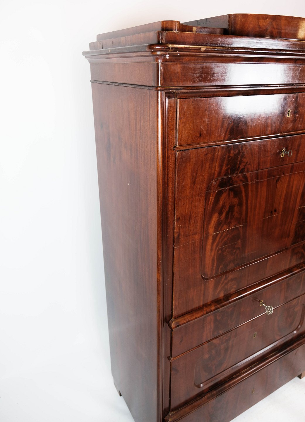 Sekretær af mahogni med intarsia, i flot antik stand fra 1840erne.