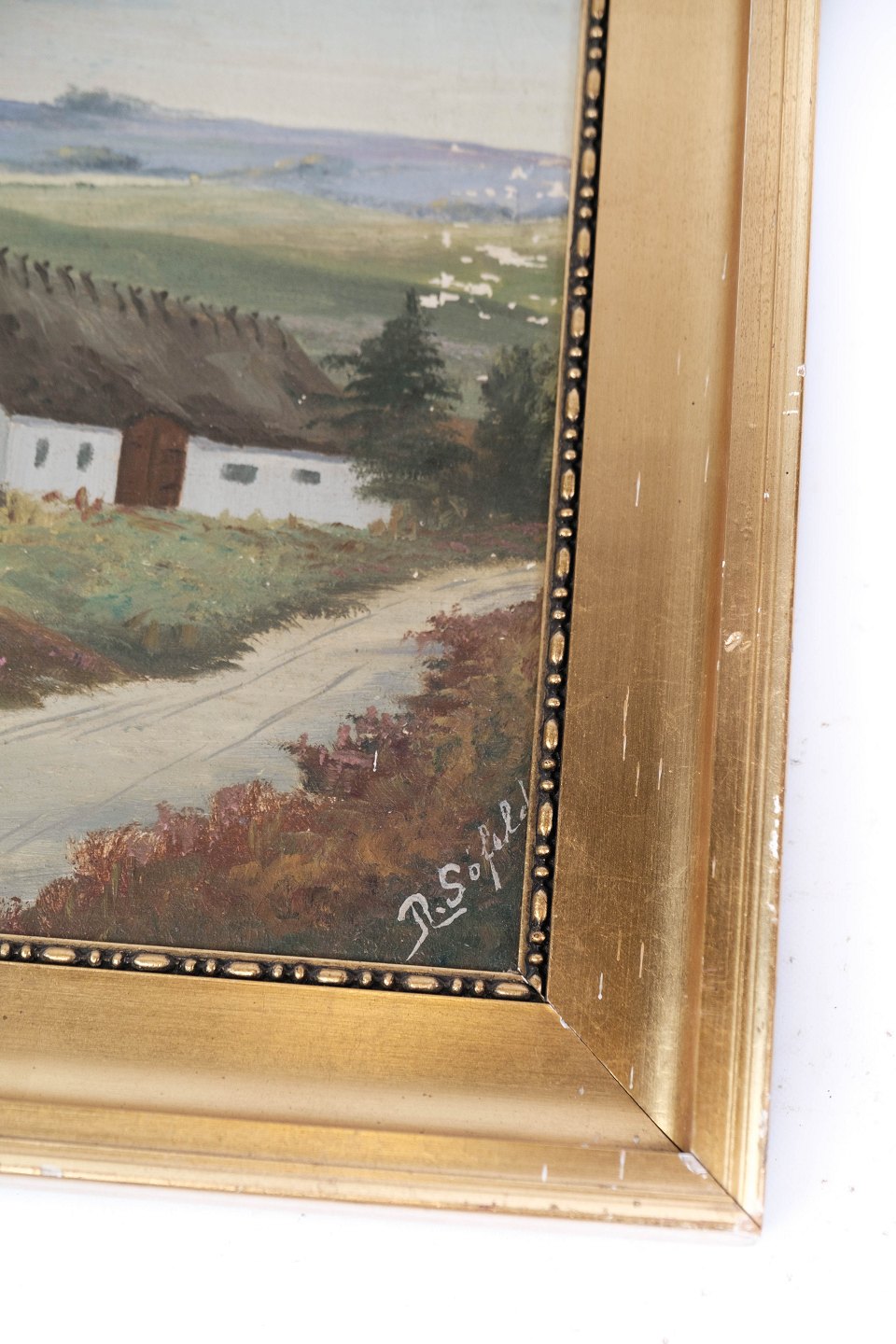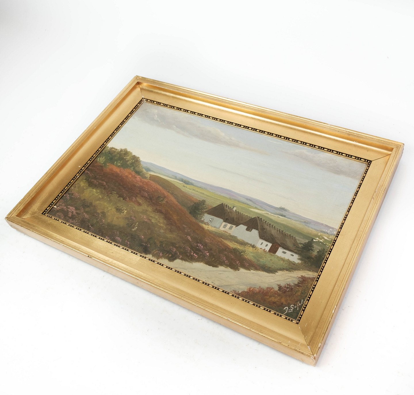 Painting on canvas with country motif and gilded frame, with unknown signature from the 1920s.
