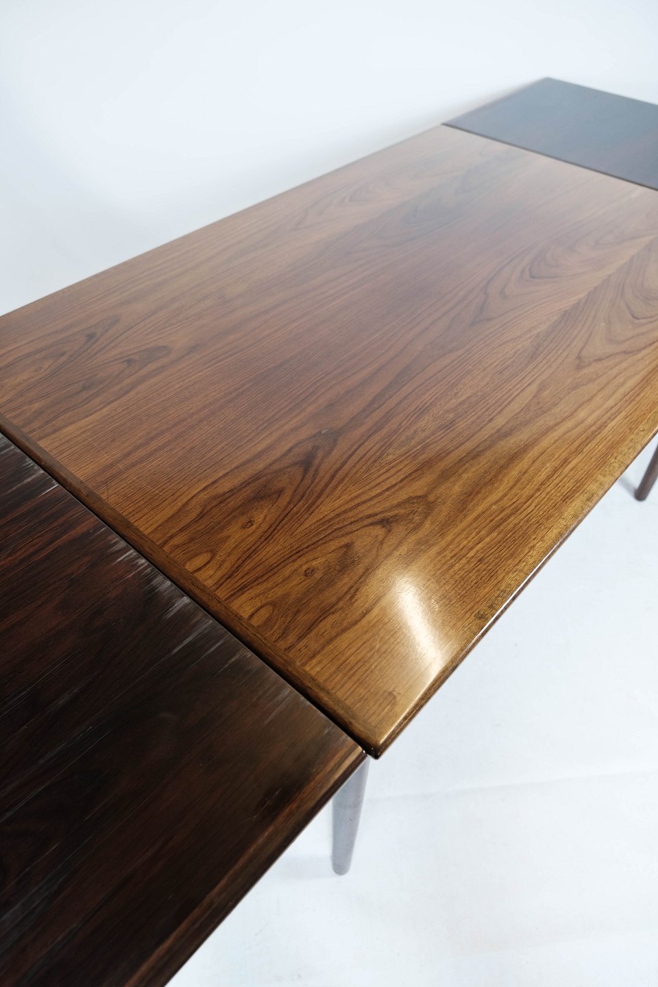 Dining table with extensions in rosewood of Danish design from the 1960s. The table is in great vintage condition.