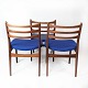 Set of three dining room chairs in teak and dark blue upholstery of Danish design from the 1960s.