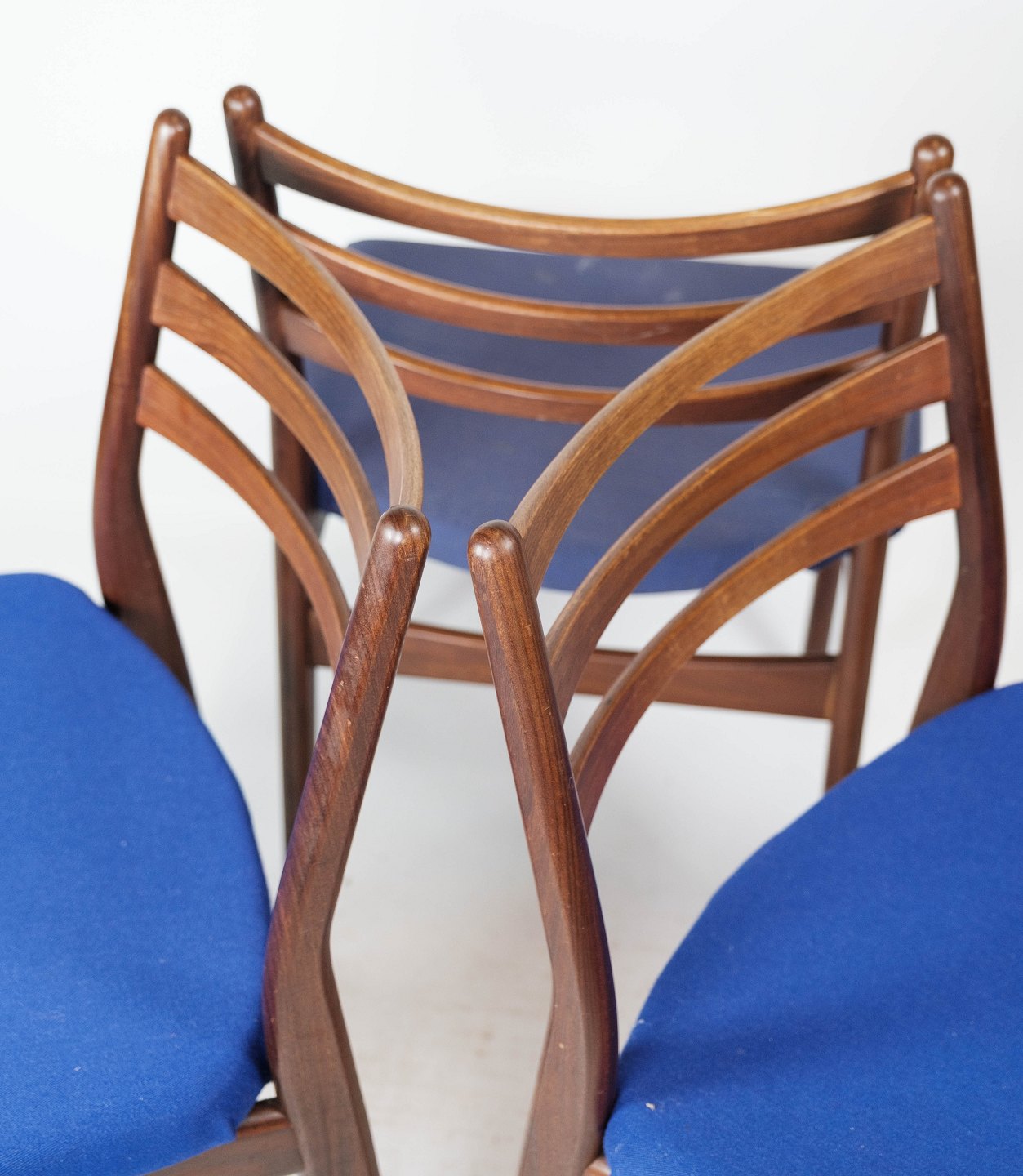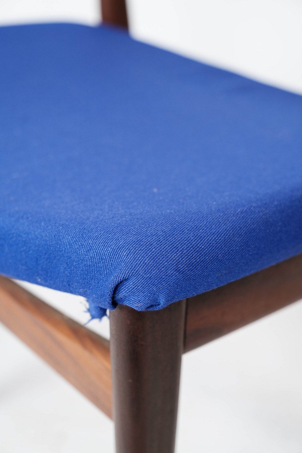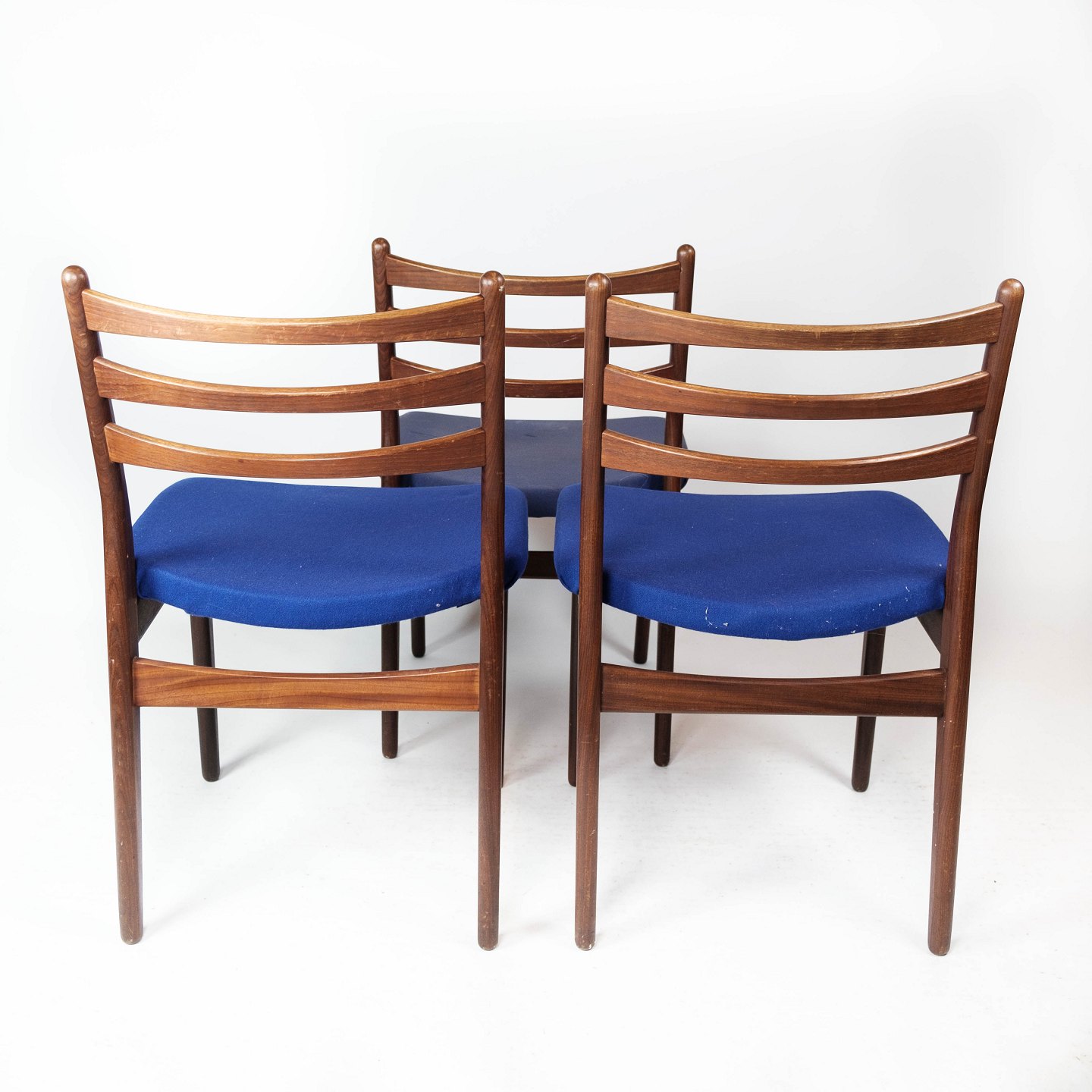 Set of three dining room chairs in teak and dark blue upholstery of Danish design from the 1960s. The chairs are in great vintage condition. The chairs can be upholstered with optional fabric / leather as desired. Contact us regarding price of upholstery.