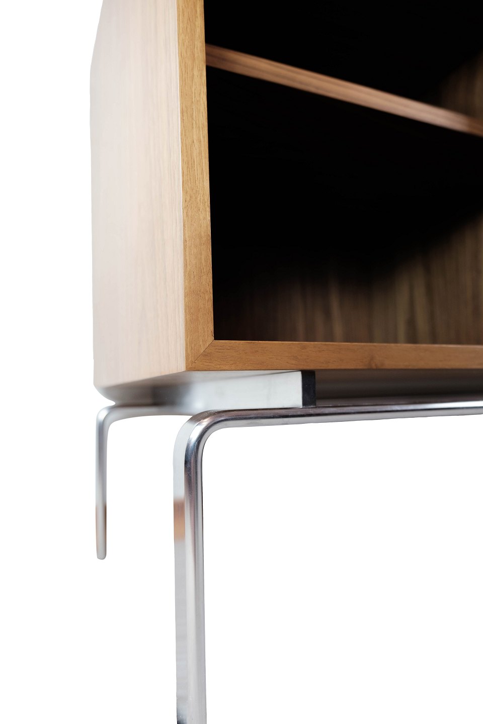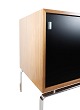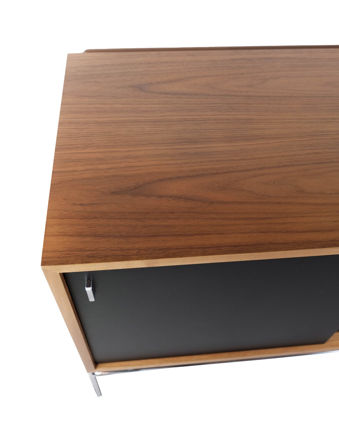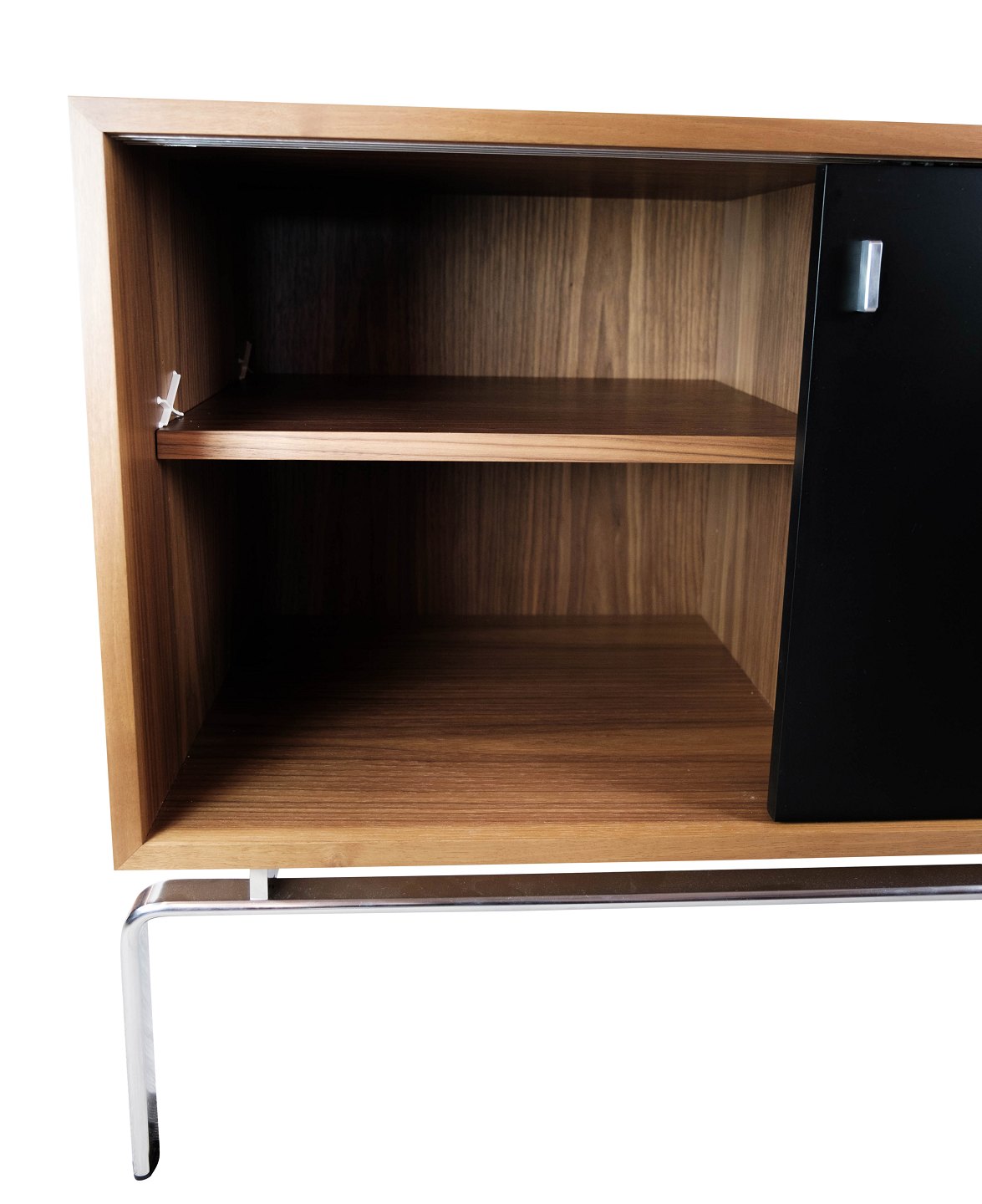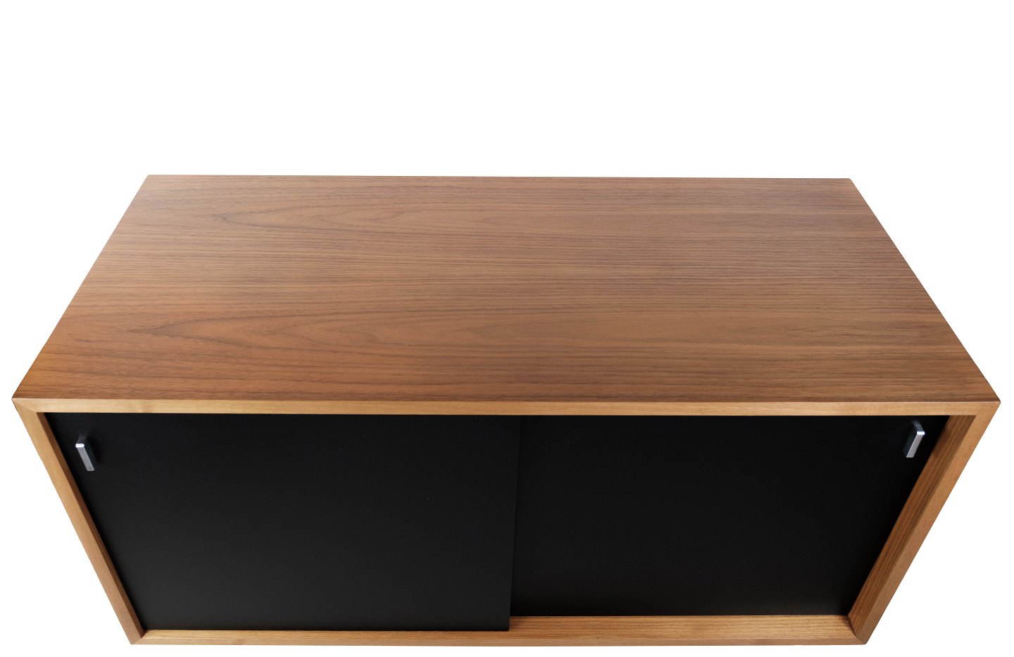 Sideboard, model FK 100, of Santon rosewood and black sliding doors, designed by Fabricius and Kastholm, and manufactured by Lange Production.
