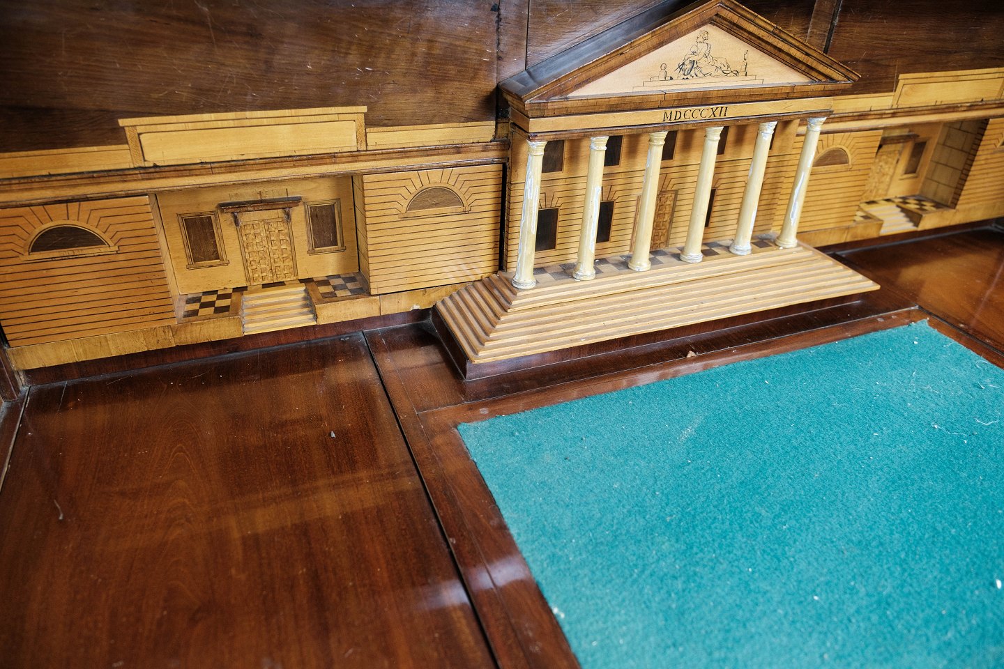 Large Empire bureau of polished mahogany with inlaid wood and decorated with carvings, from the 1840s.