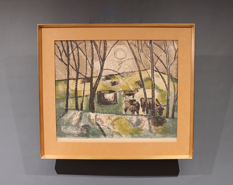 Painting on canvas with nature motif painted by Finn Wennerwald (1891-1969) from the 1930s.
