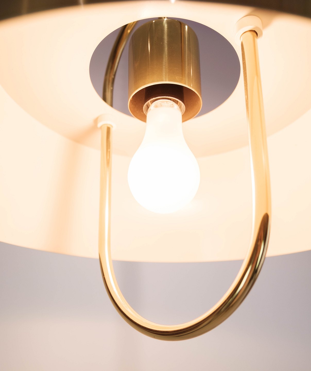 Ceiling pendant, model Hercules, by Jo Hammerborg for Fog and Mørup from the 1960s. It is a retro pendant lamp that reflects beautiful Scandinavian design in top class. The lamp is the perfect decor lamp for above the dining table. The lamp is in great vintage condition.