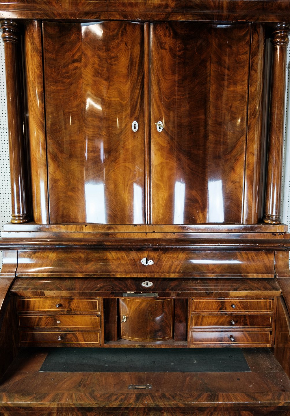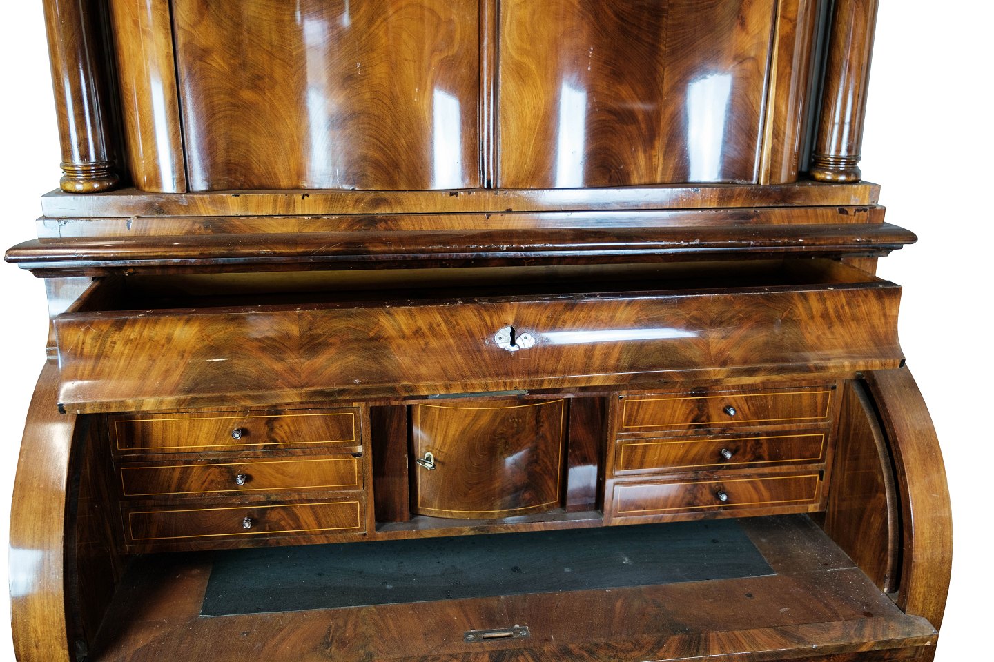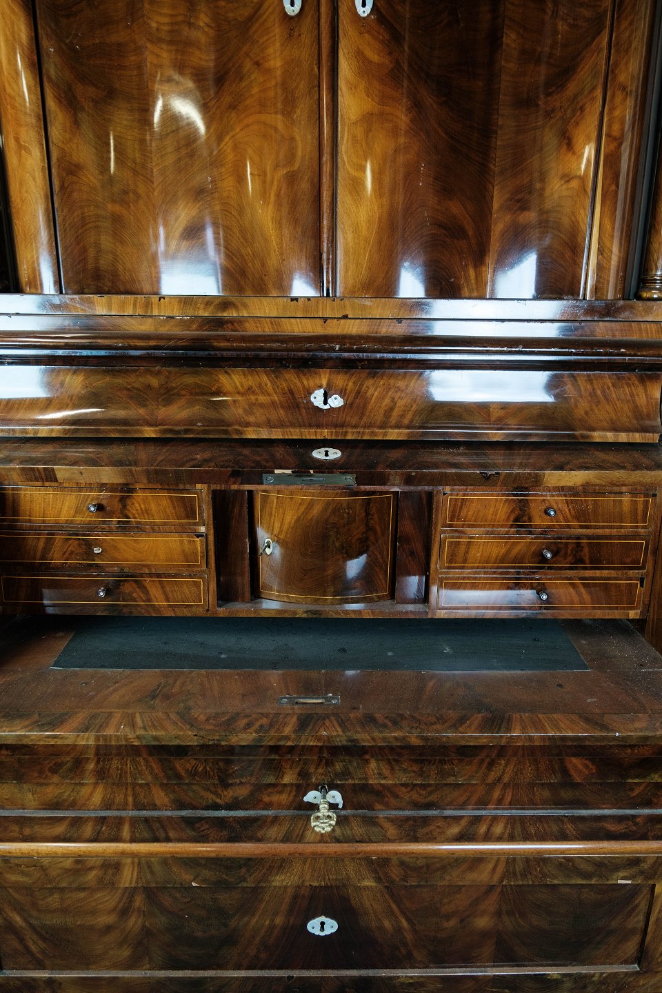 Large bureau of hand polsihed mahogany from Copenhagen in the 1860s.