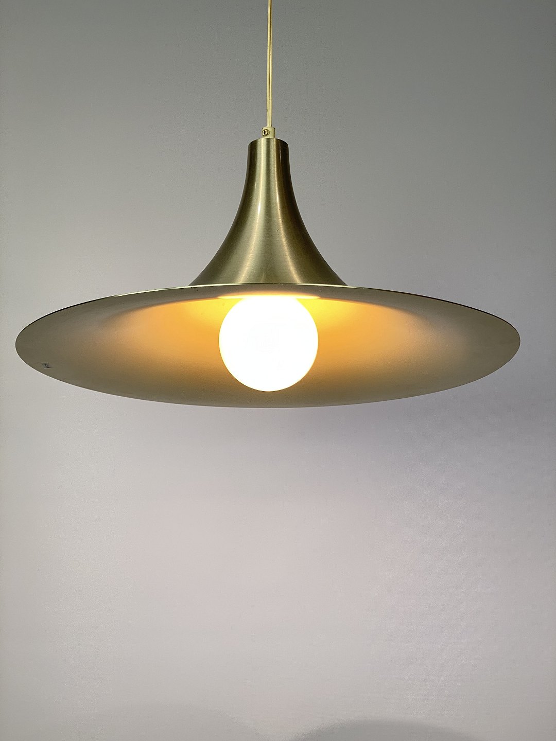 Ceiling pendant made of brass in the style of Gubi pendant designed by Claus Bonderup and Thorsten Thorup in 1968.