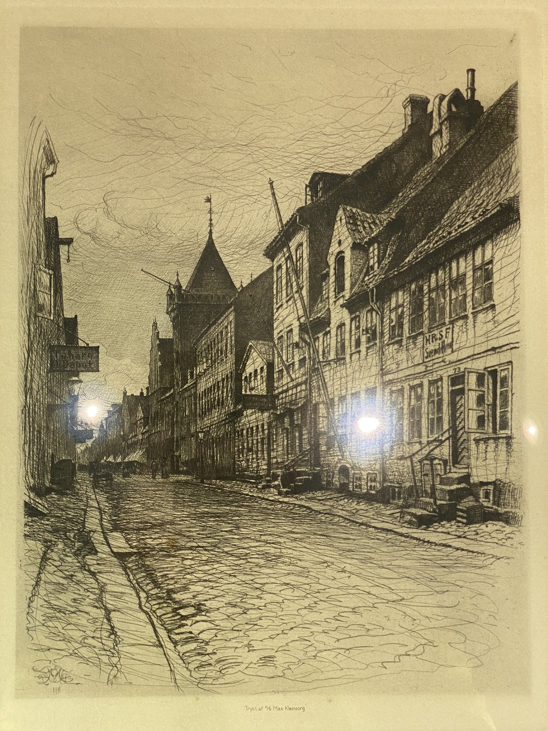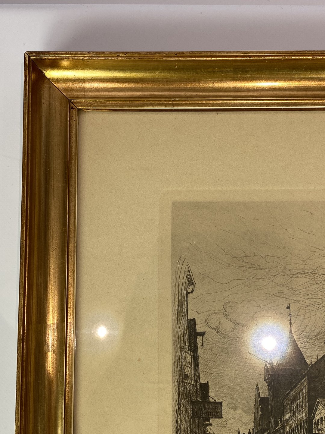Print with motif of a street in Copenhagen with gilded frame, from around the 1930s.