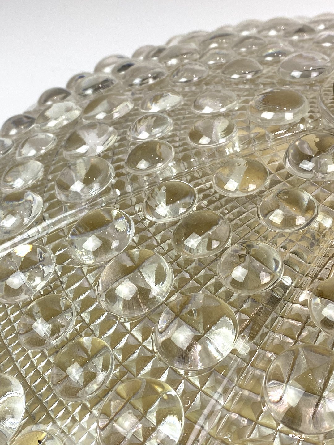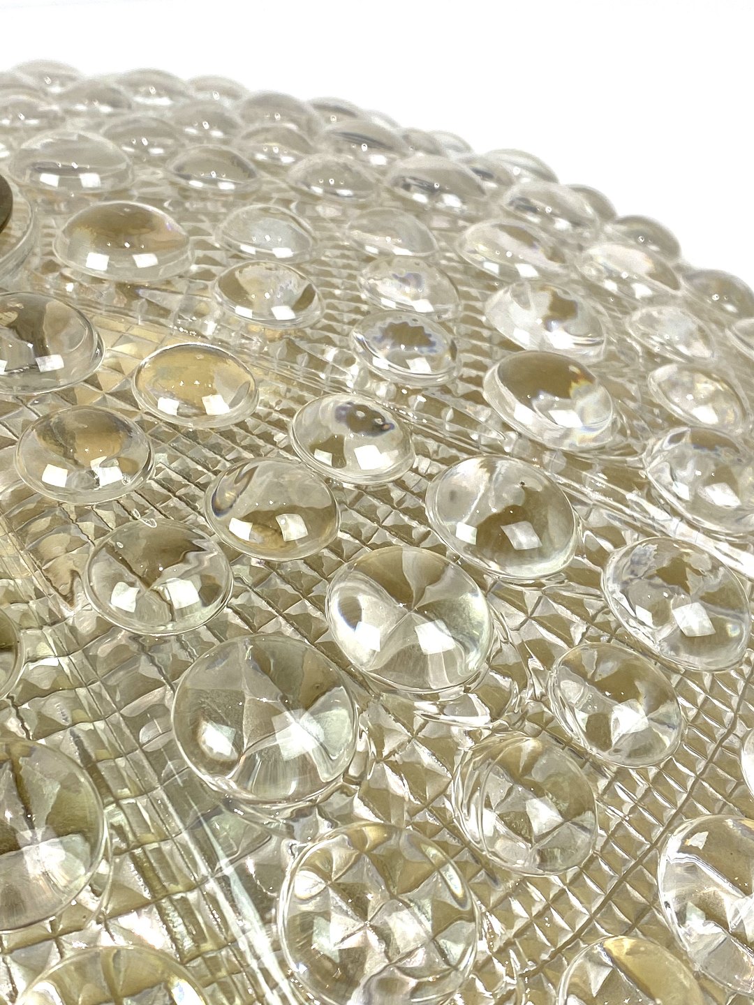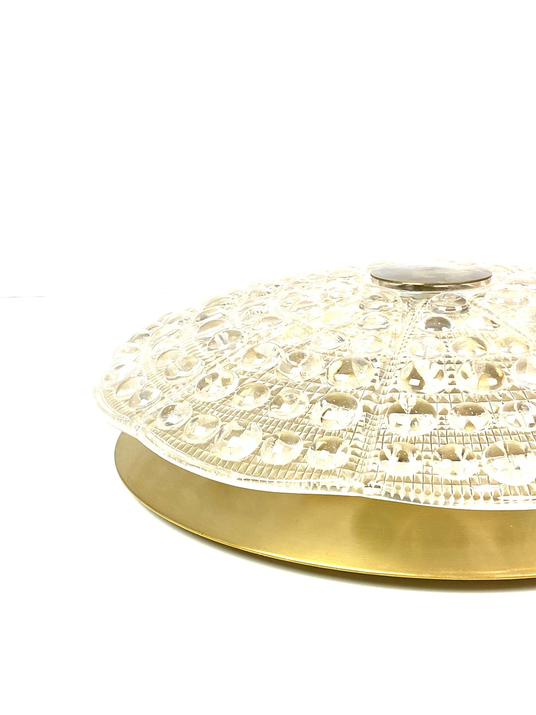 Loftlampe i messing og glas af dansk design fremstillet af Orrefors glasværk i 1960erne. Lampen er i flot brugt stand.