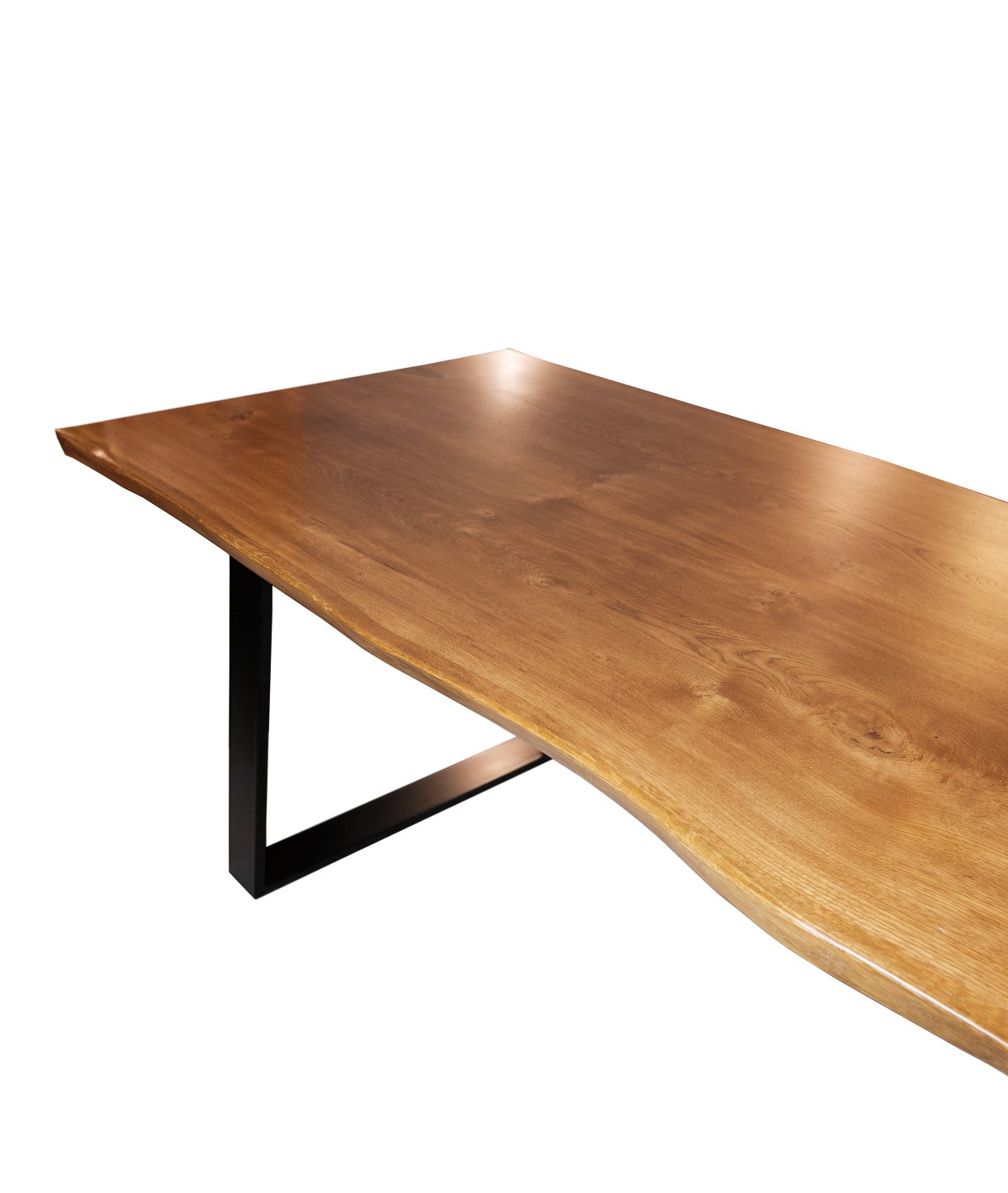 Kontakt os vedrørende prisPlankebord af egetræ og rammestel af sort metal, af 2 massive planker med naturkanter. Bordet er af eget design og ny fremstillet.