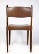 A set of 6 chairs of Danish design made of solid rosewood with brown leather from around the 1960s. The wood on the chairs is in very fine used condition and the leather has a nice patina.
