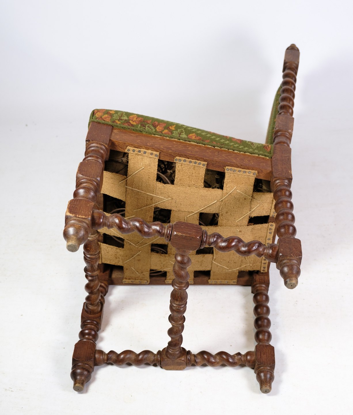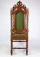 Højryggede stol i massiv egetræ med stil af renæssancen fra omkring år 1910.