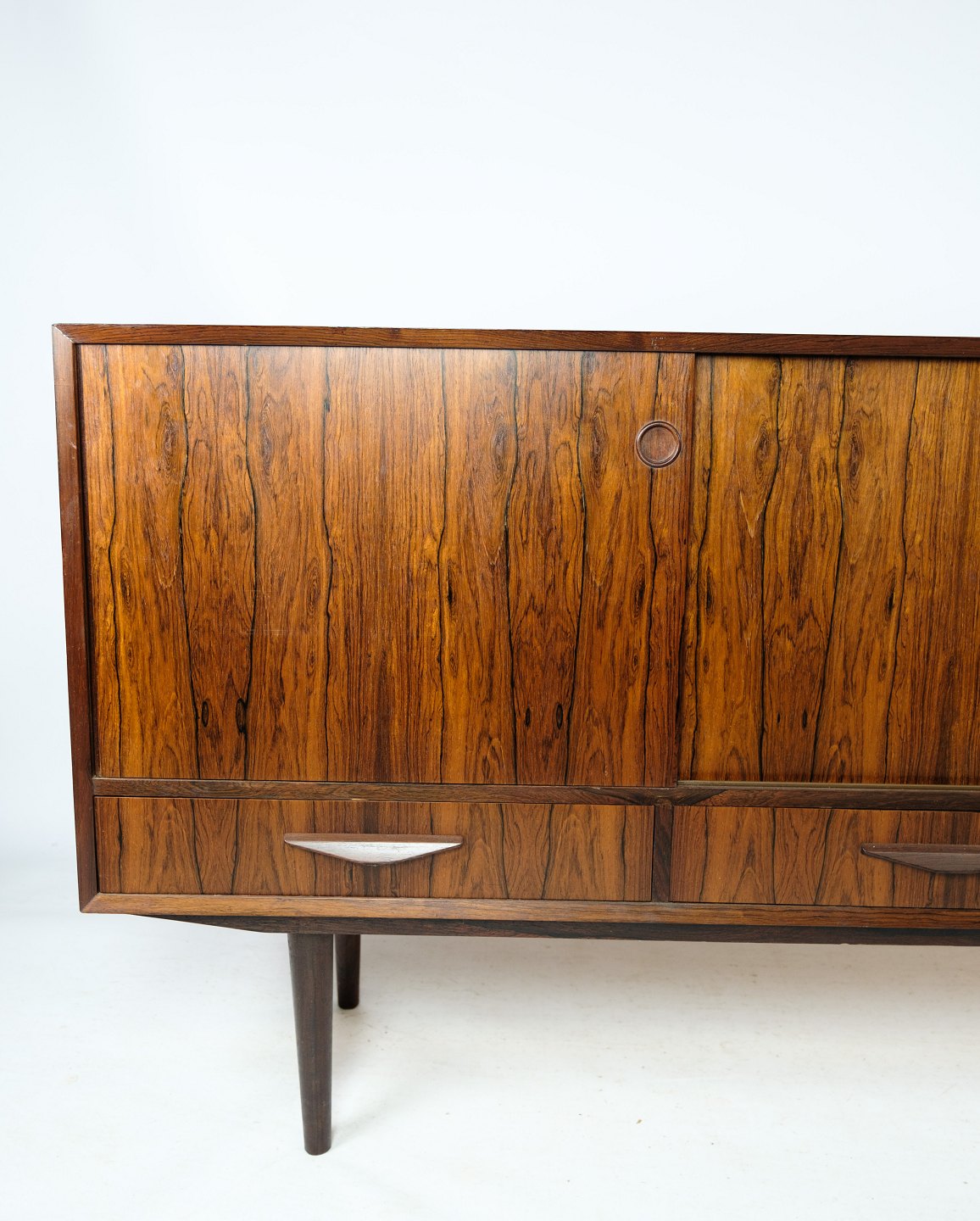 Kontakt os vedrørende prisOpdag ægte dansk håndværk og tidløs elegance med denne skænk i palisander, designet og fremstillet i Danmark omkring 1960'erne. Denne eksklusive skænk udstråler en sublim kombination af stil og funktionalitet, der vil berige ethvert hjemmemiljø.