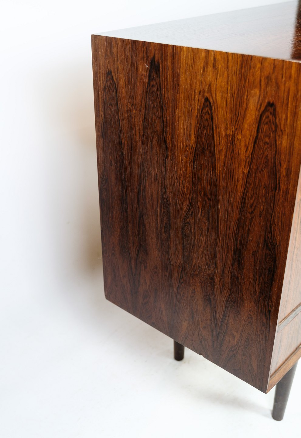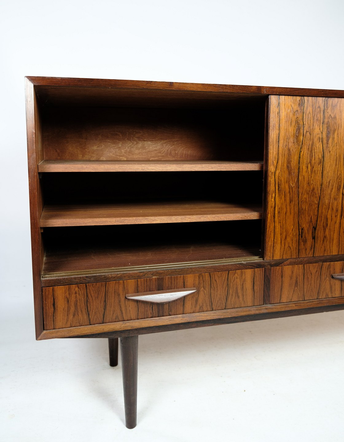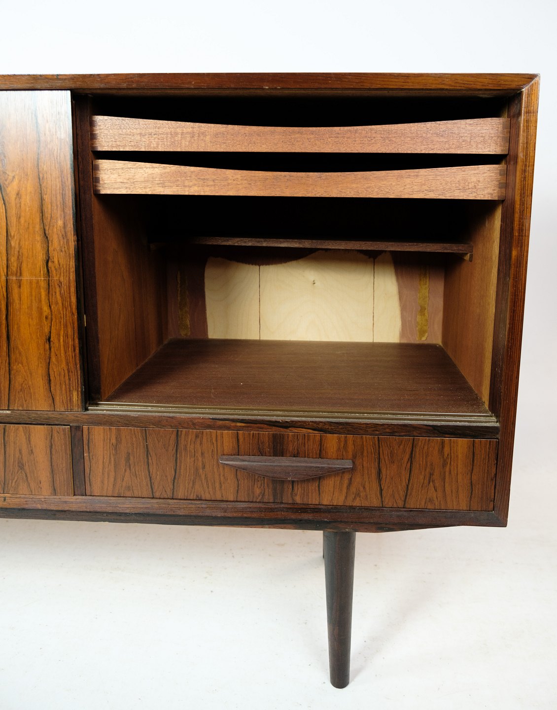 Den fine palisanderkonstruktion og den omhyggeligt udførte finish vidner om den udsøgte håndværksmæssige kvalitet, som er kendetegnende for dansk design. Med denne skænk får du ikke kun et smukt møbel, men også et stykke ægte designhistorie, der vil glæde dig i mange år fremover.