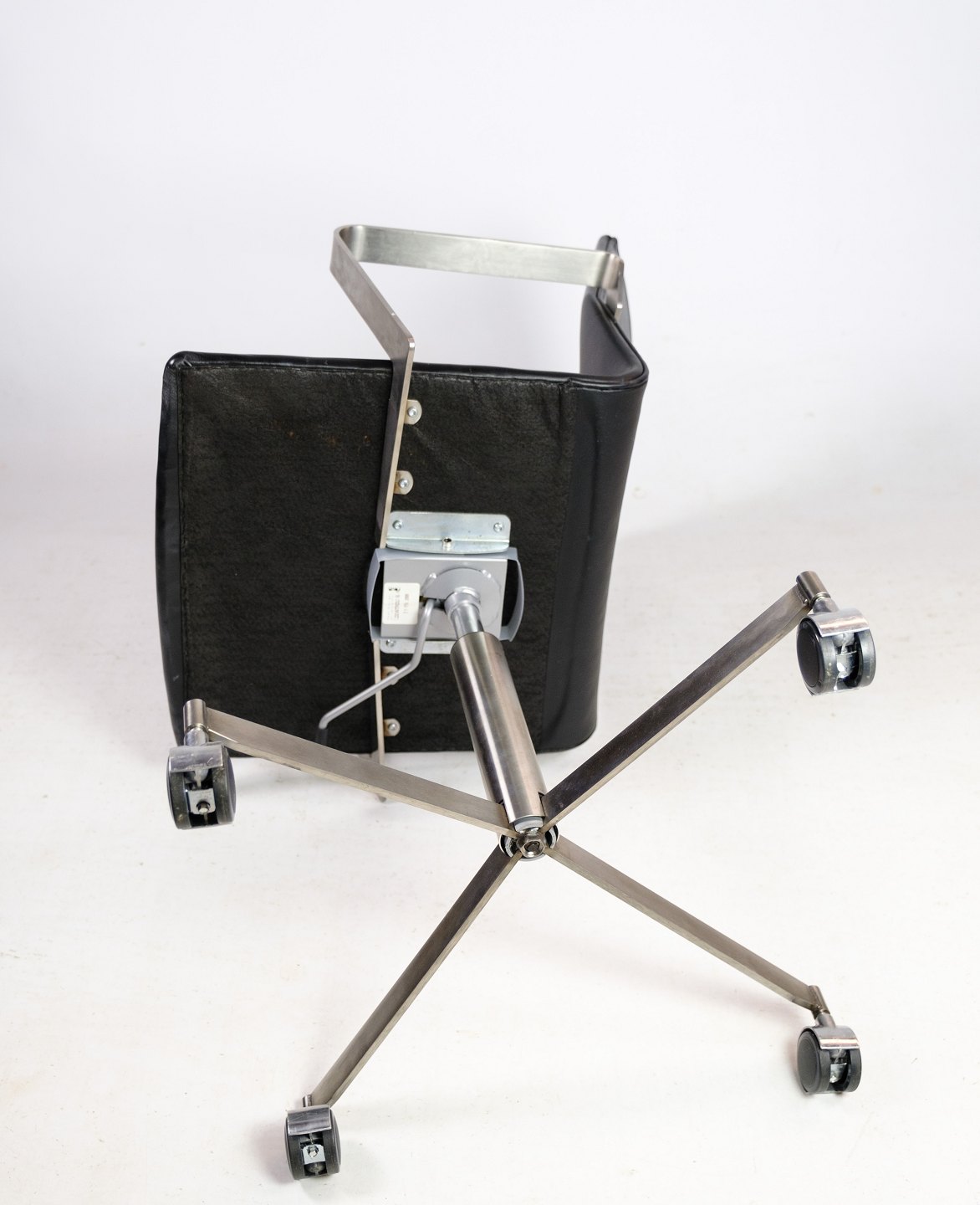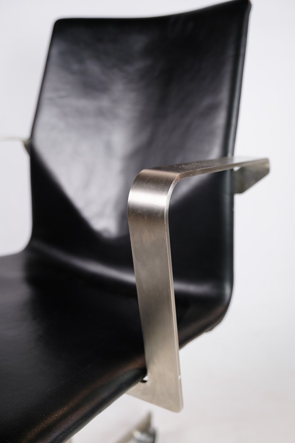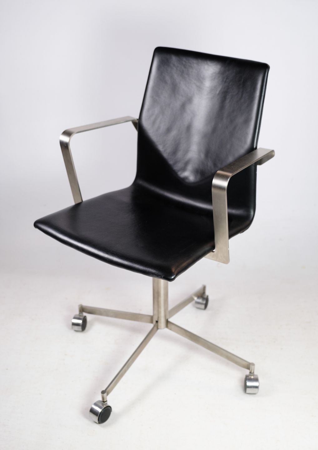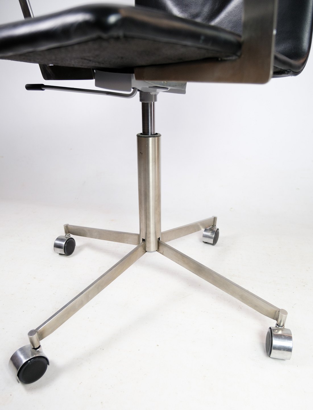 Office chair made of steel and black elegance leather of Danish design.