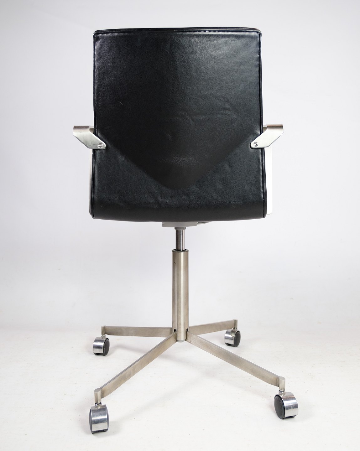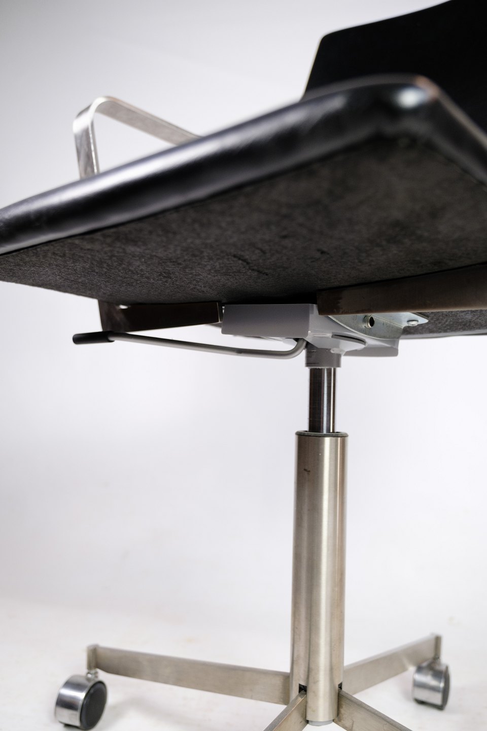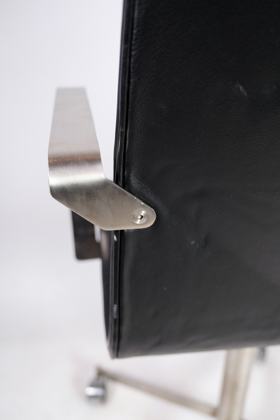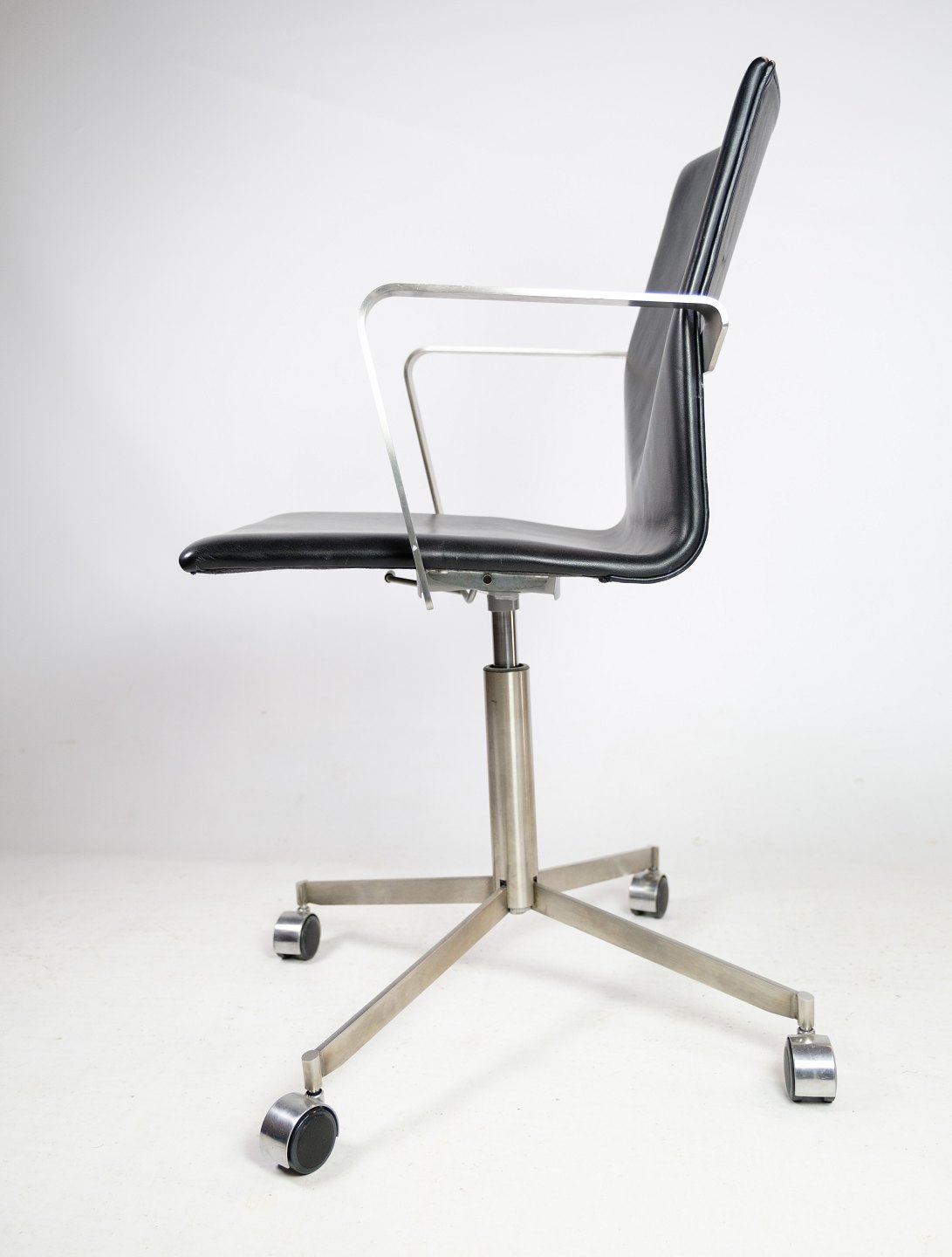 Office chair made of steel and black elegance leather of Danish design.
