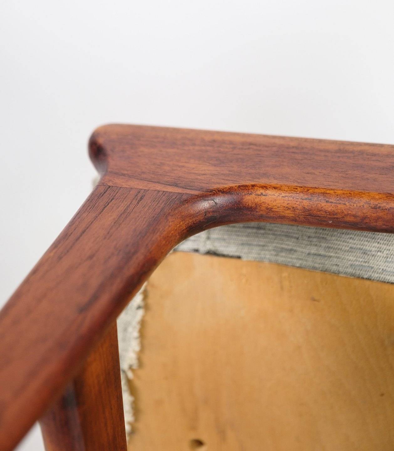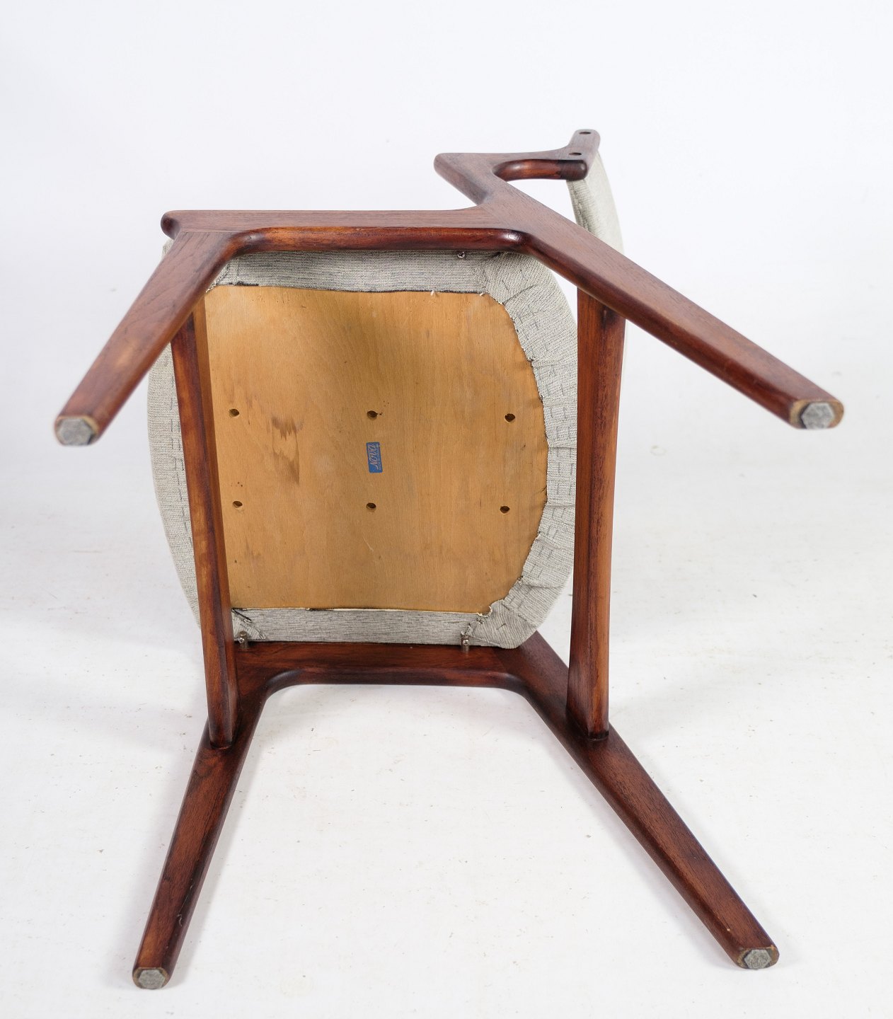 Set of 4 armchairs in teak wood, designed by Nova furniture from around the 1960s. The chairs are made of nice gray fabric in very fine condition.