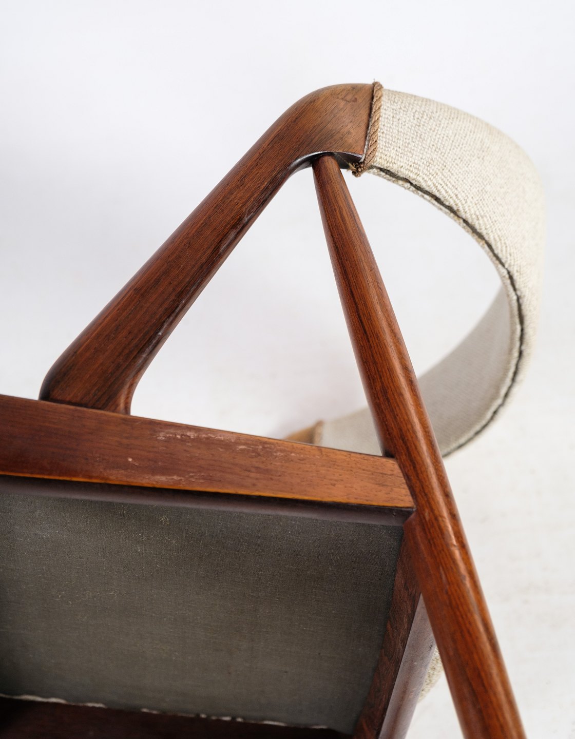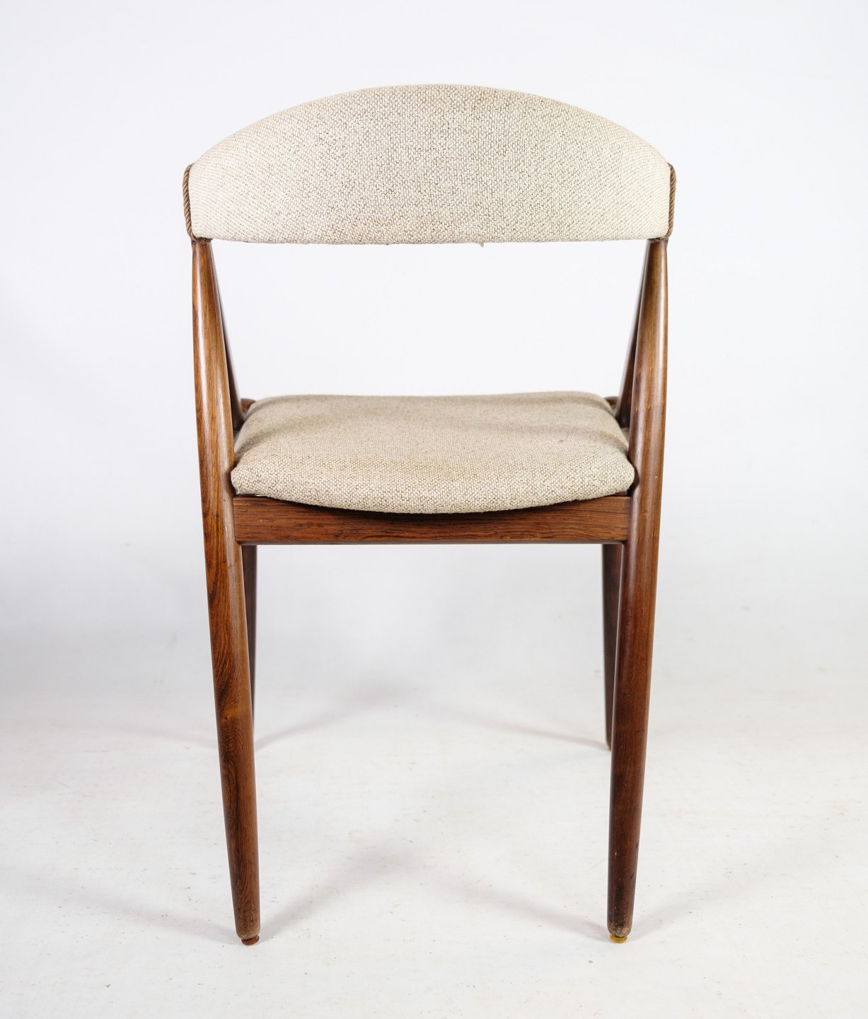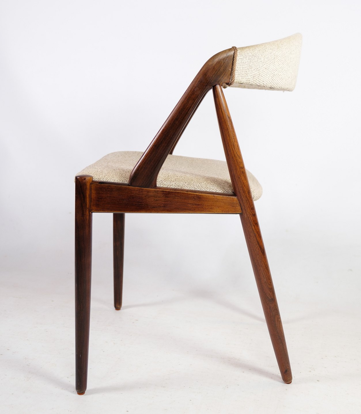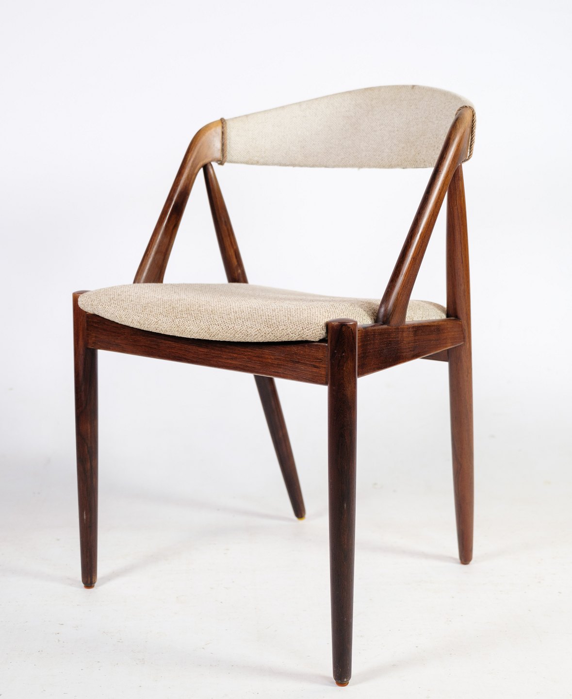 Set of 4, model 31, dining room chairs designed by Kai Kristiansen from around the 1960s. The chairs are made by Schou Andersen with rosewood frames in very fine condition. The fabric needs reupholstering, which we also do in our own workshop. Write a message so we can talk about which fabric you want to wear for an additional price.