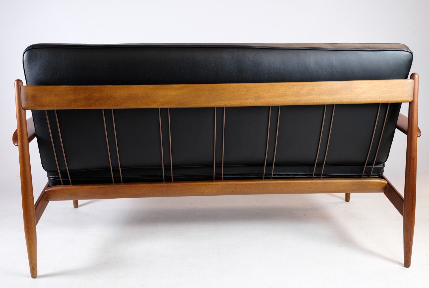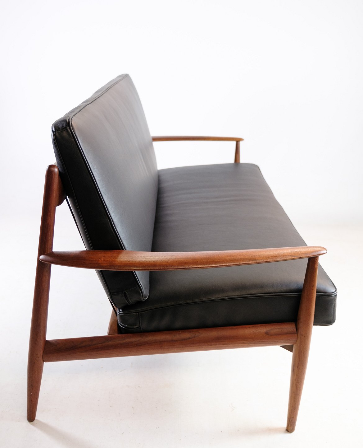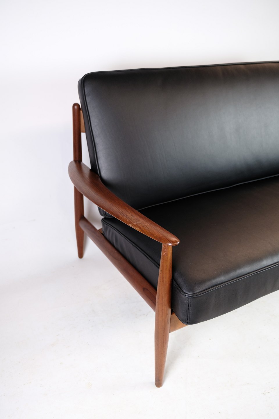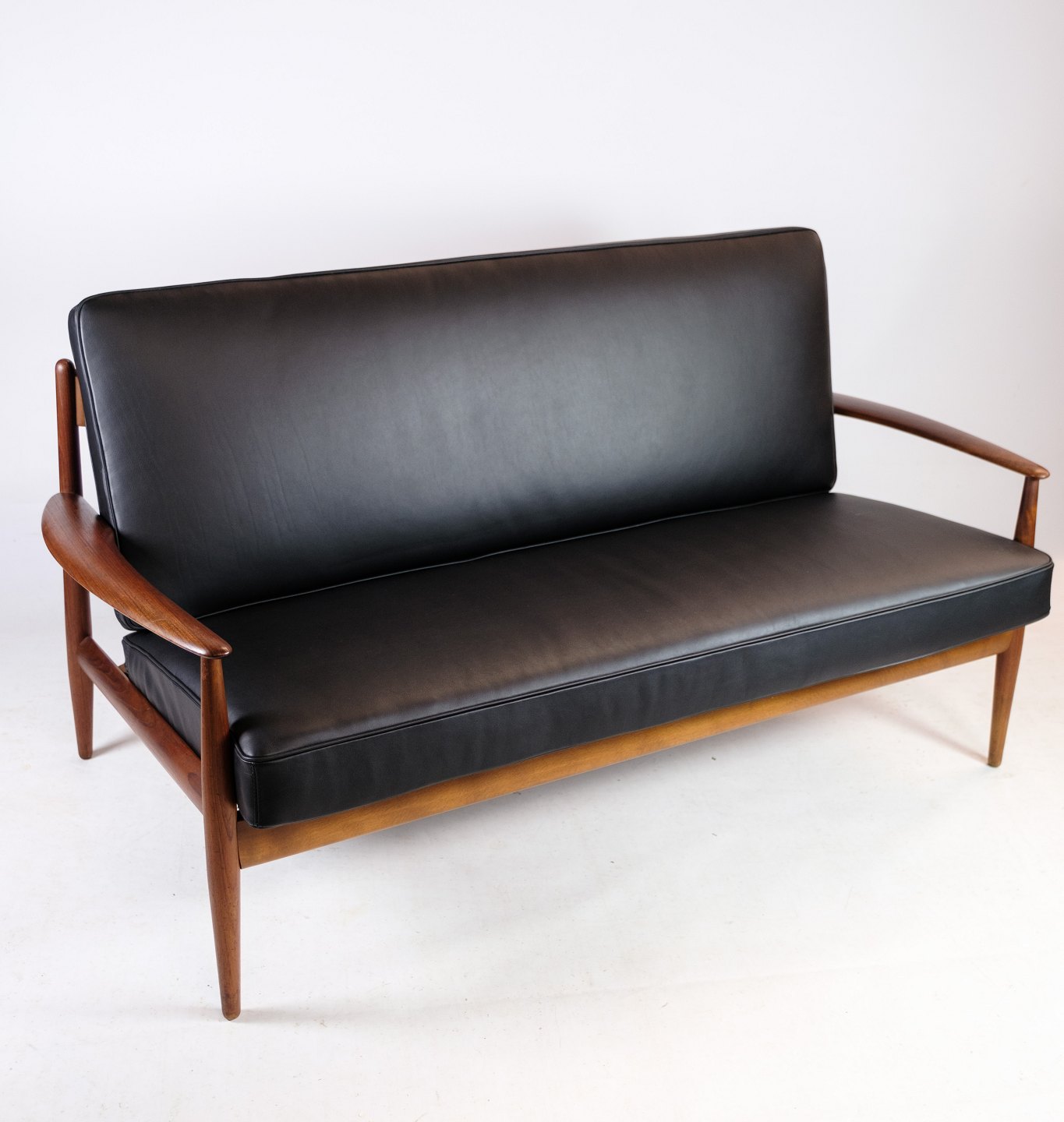 Kontakt os vedrørende prisDenne 2-personers sofa fra omkring 1960'erne er en sjælden skønhed designet af Grete Jalk og fremstillet af France & Søn i Danmark. Den er udført i smukt teaktræ og har nybetrukkede hynder i elegant læder af den fineste kvalitet. Teakstellet på sofaen er blevet istandsat, så den står i fremragende stand og er klar til at pryde dit hjem.