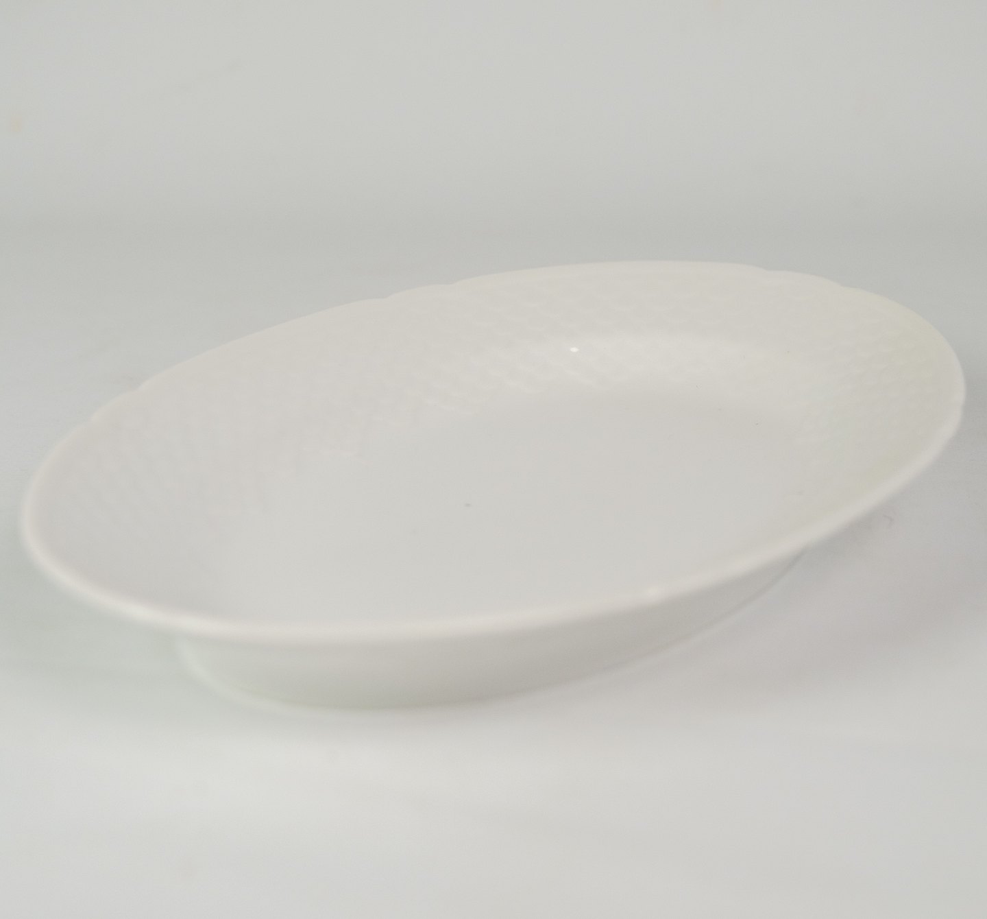 White fluted oval dish from Bing & Grøndahl from around the 1950s.