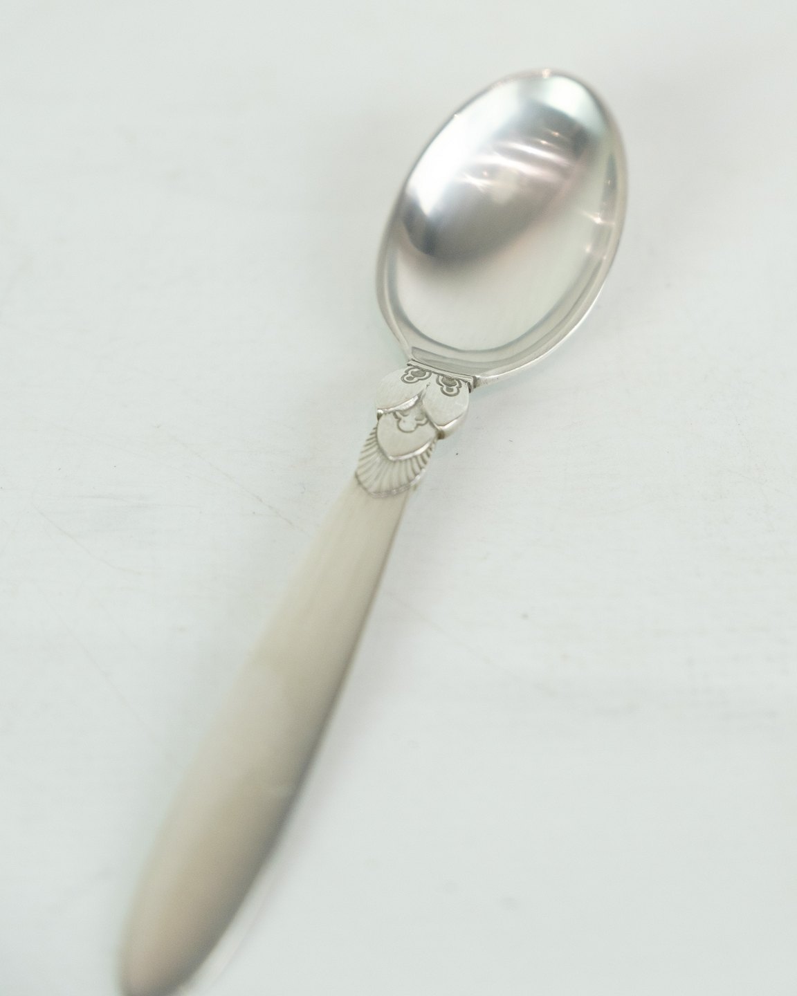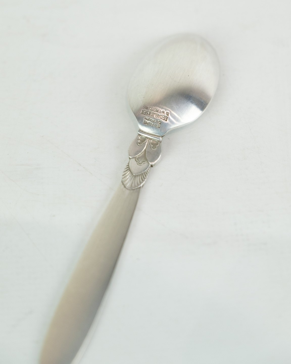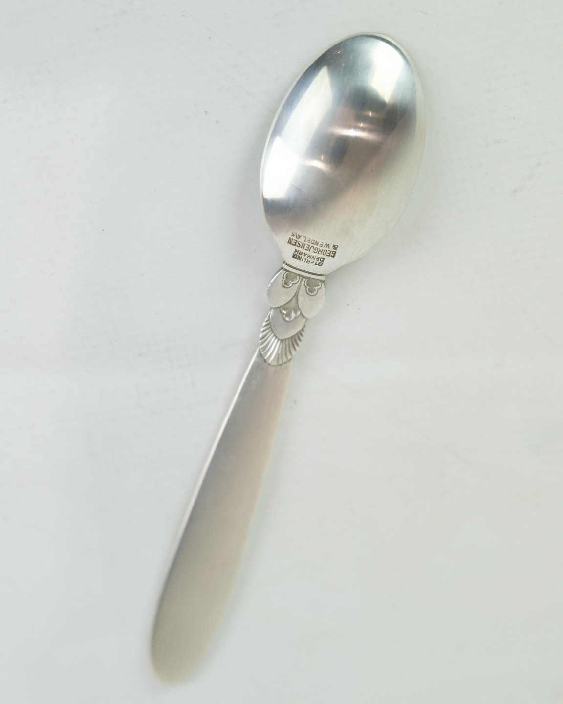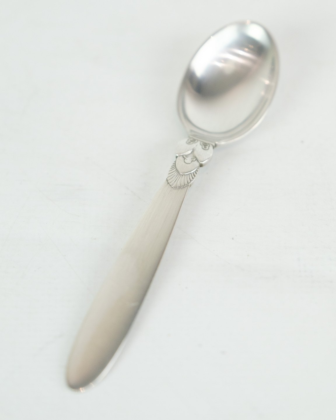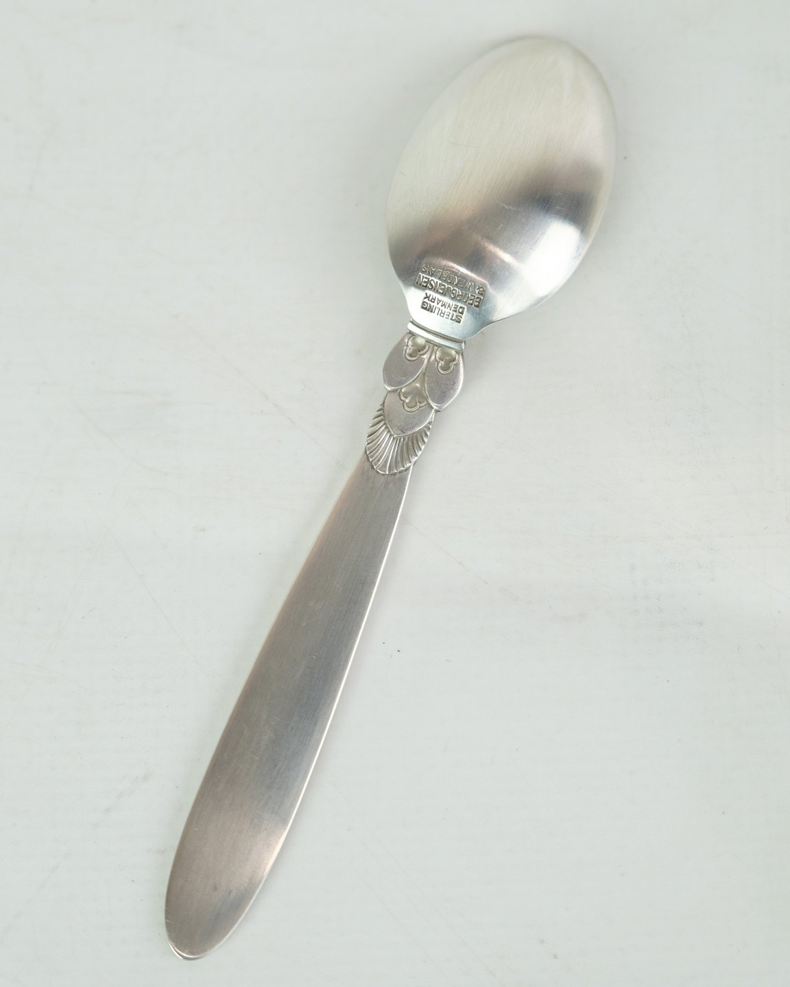 This Kaktus coffee spoon is a beautiful and practical addition to your coffee experience. Designed by Gundorph Albertus in 1930 and produced by Georg Jensen Sølvsmedie in Denmark, this spoon is marked with the well-known cactus pattern. Although in a nice used condition with normal signs of use, it will still bring a touch of elegance to your morning coffee. Our stock is limited, so please inquire about available quantities.