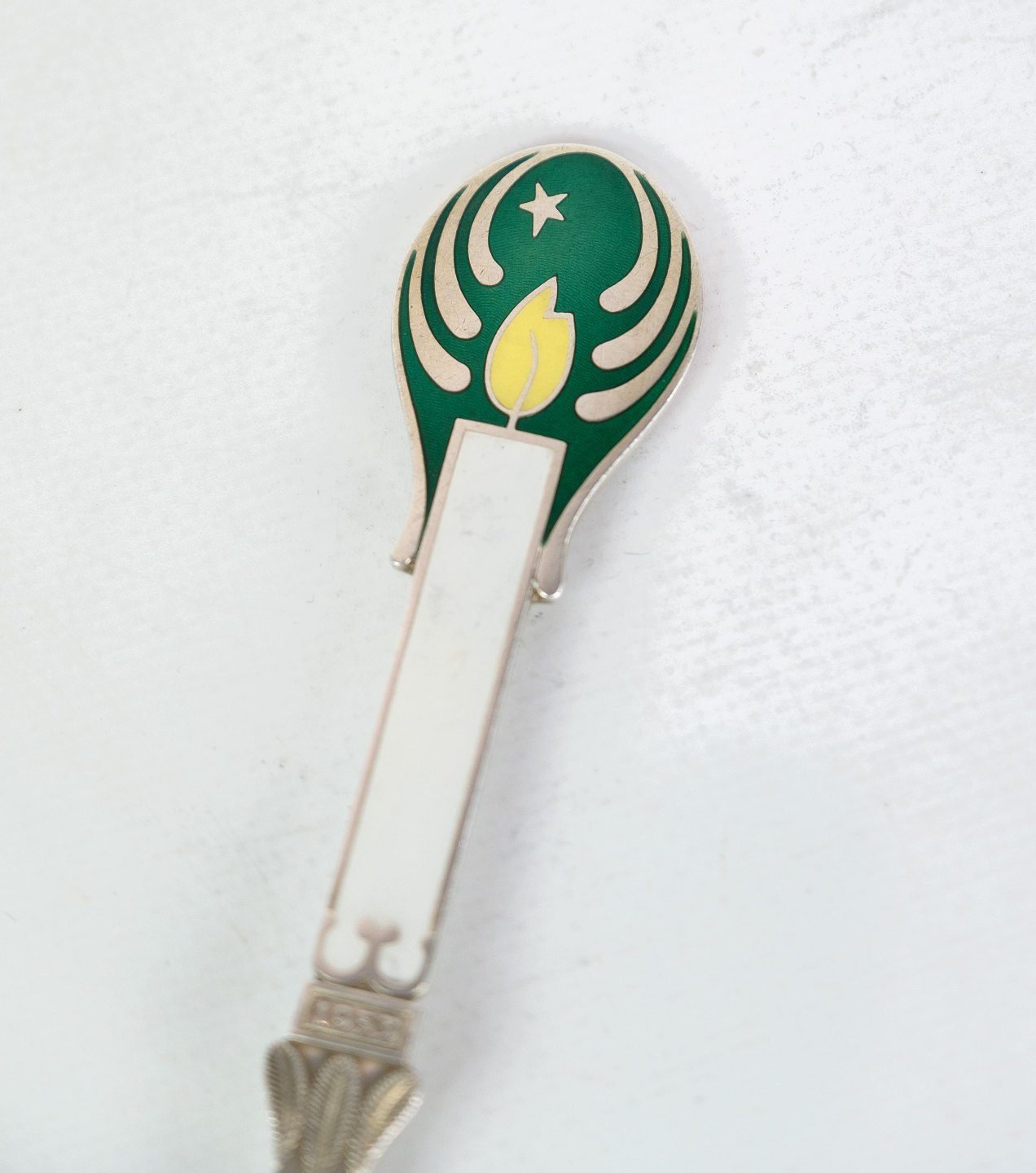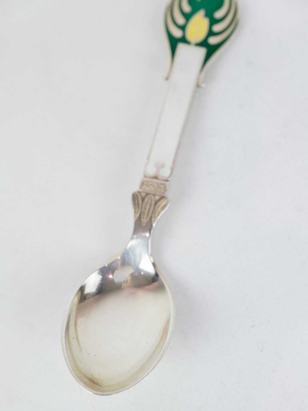 Older Christmas spoon with nice decoration in three-towered silver in fine used condition.