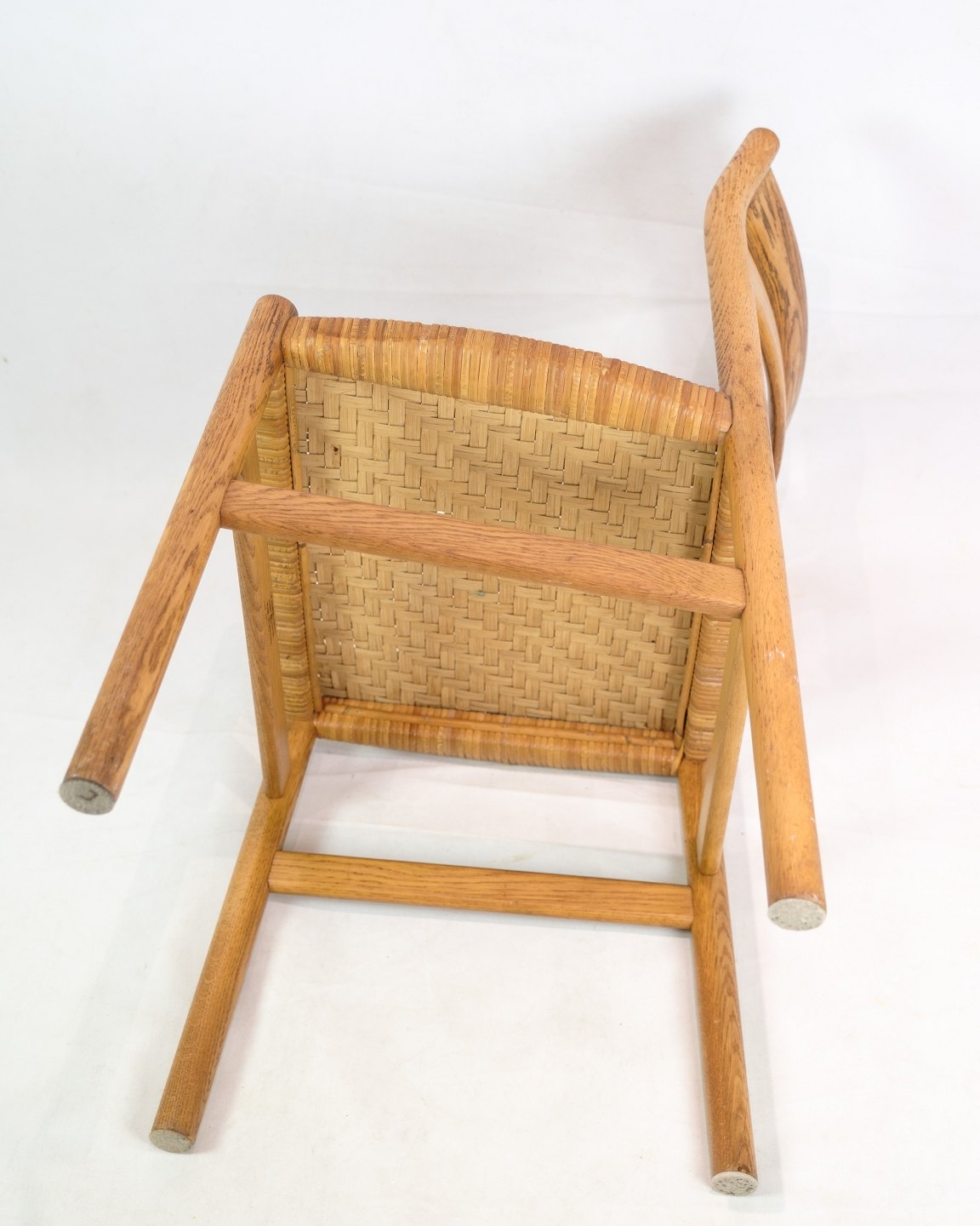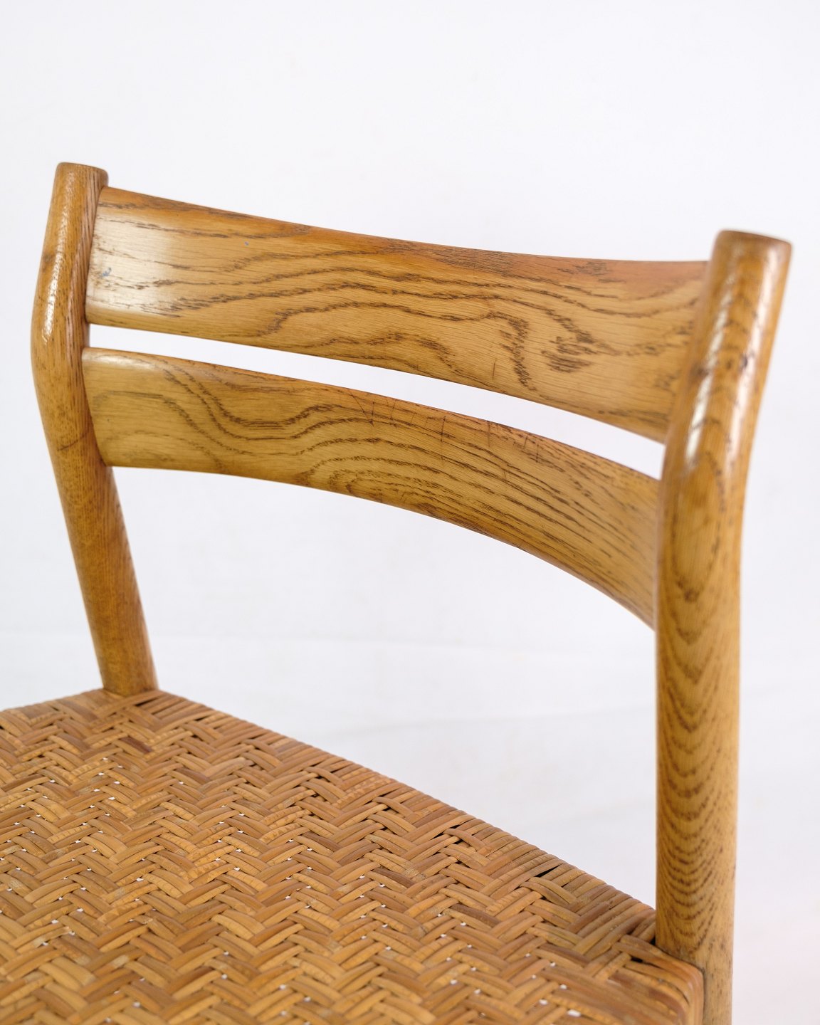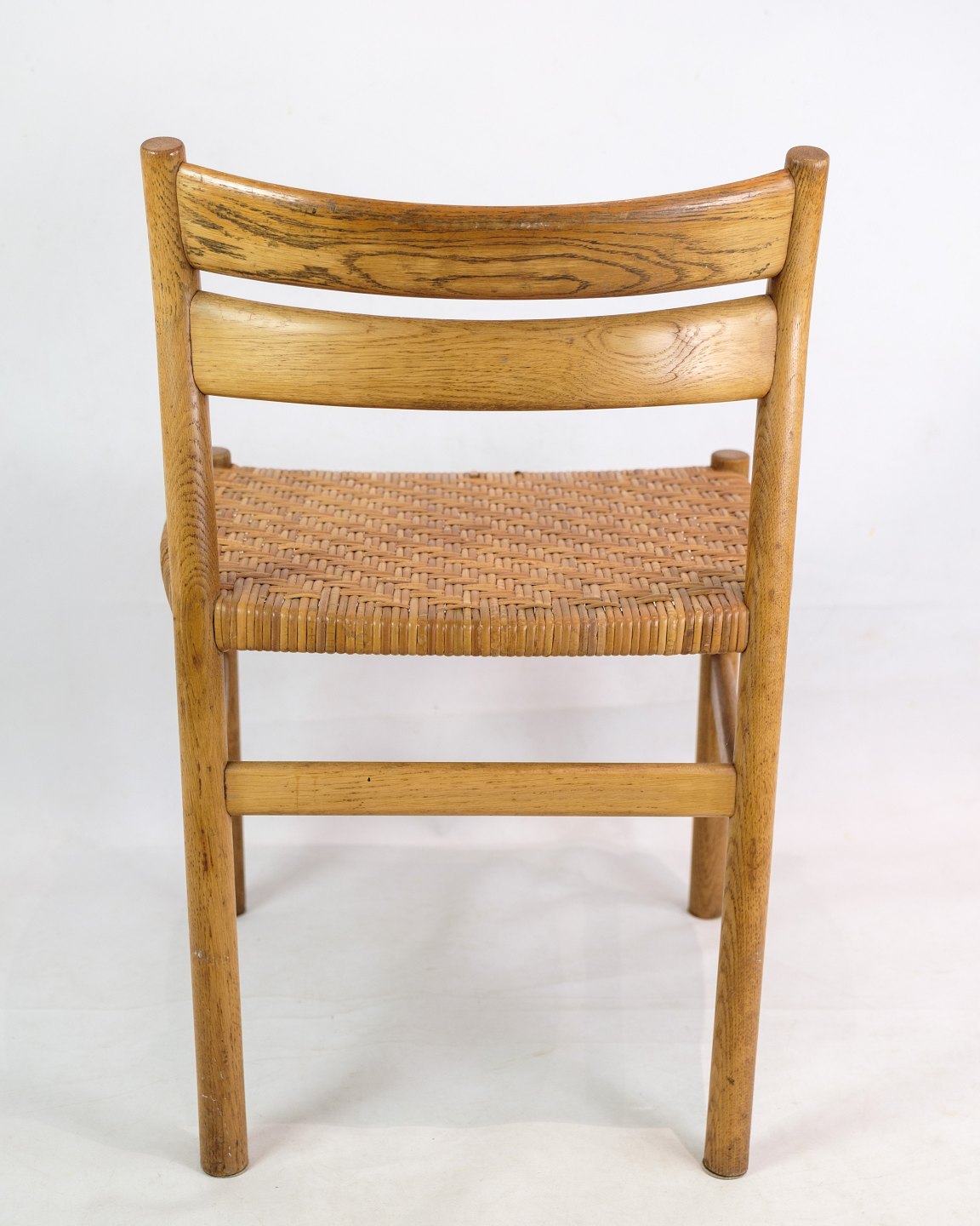 SoldSet of four dining chairs in oak and seat in wicker, designed by Børge Mogensen and produced by C.M Madsen Møbelfabrik in the 1960s. The chairs are in nice vintage condition. Their simple and timeless design makes them suitable for a range of interior styles and will fit into any dining room environment