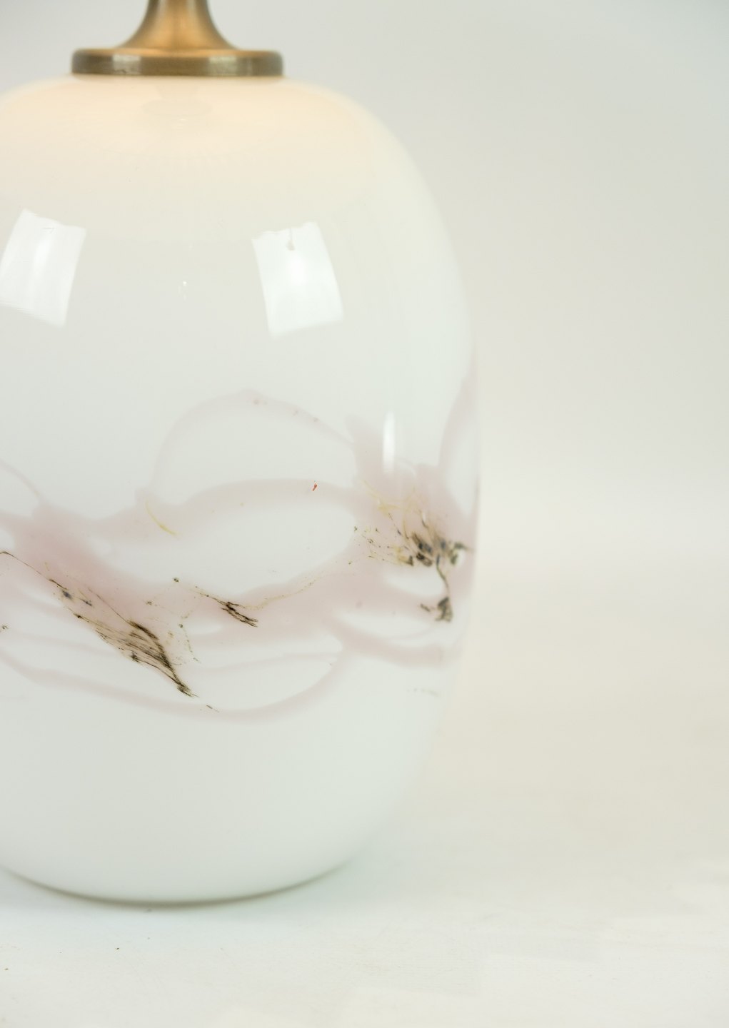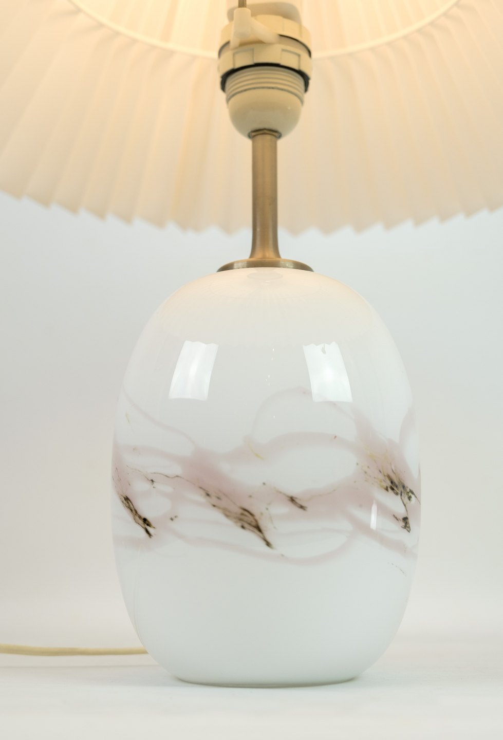 Bordlampe, model Sakura, designet af Michael Bang med hvidt opalglas med rosa dekoration.