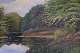 Painting, gold frame, lake and forest, signed Th Brammer 1930, 58.5x78